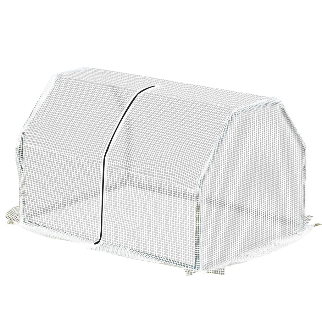 Create a safe and nurturing environment for your plants with this outdoor garden greenhouse. Designed to protect plants, fruits, vegetables, and flowers, this greenhouse ensures your greenery can thrive year-round. Featuring a durable PE cover with a mesh grid, it offers UV and water resistance, safeguarding your plants from harsh weather while allowing ample sunlight for healthy growth. The zippered double doors provide larger operating space and improved ventilation, making it easy to manage your plants. The strong, powder-coated steel frame includes five horizontal supporting tubes for enhanced stability. Additionally, the overlong cover edges should be buried in the soil to further secure the structure. This compact greenhouse is a perfect solution for gardeners looking to optimize their growing space.