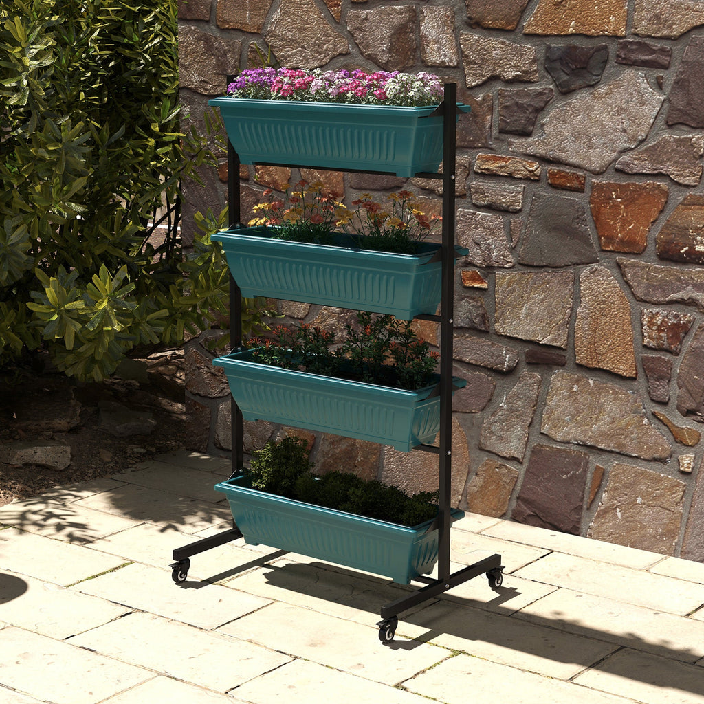 Maximize your gardening space with this versatile four-tier elevated garden bed. Perfect for balconies, verandas, or small outdoor areas, this garden bed allows you to grow a variety of plants while saving space. Each tier is equipped with two drainage holes for optimal water flow, ensuring healthy plant growth. The elevated design minimizes bending, making it ideal for seniors or anyone with limited mobility, allowing for a more comfortable gardening experience. The four lockable castors enable easy mobility, so you can move the bed around or keep it stationary. Built with a sturdy powder-coated steel frame and durable plastic pots, this planter is perfect for both indoor and outdoor use. When not in use, its stackable design makes for convenient, space-saving storage.