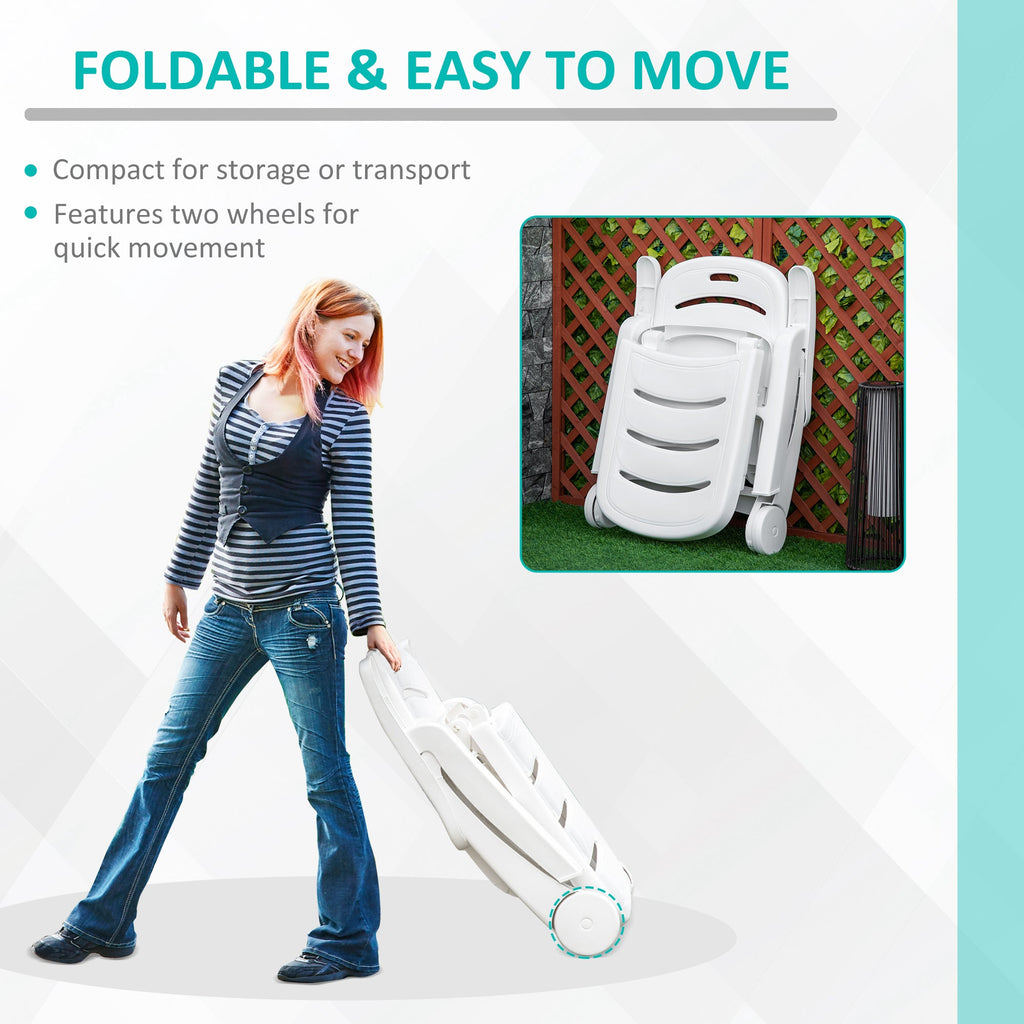 Relax and unwind in ultimate comfort with our reclining outdoor pool chair, designed to enhance your outdoor experience. With five adjustable reclining positions, you can easily find your perfect angle for sunbathing or lounging. Crafted from waterproof polypropylene with a slatted design, this chair ensures efficient drainage, making it the perfect companion for poolside relaxation. The chair is portable and easy to store thanks to its quick-folding mechanism, and its compact size fits easily in your car trunk for transport. Equipped with all-terrain swivel wheels, you can move this versatile lounge chair effortlessly from your poolside to the beach or garden. Whether you're enjoying a day at the pool or sunbathing on the beach, this outdoor chaise lounge will be your go-to for comfort and convenience.