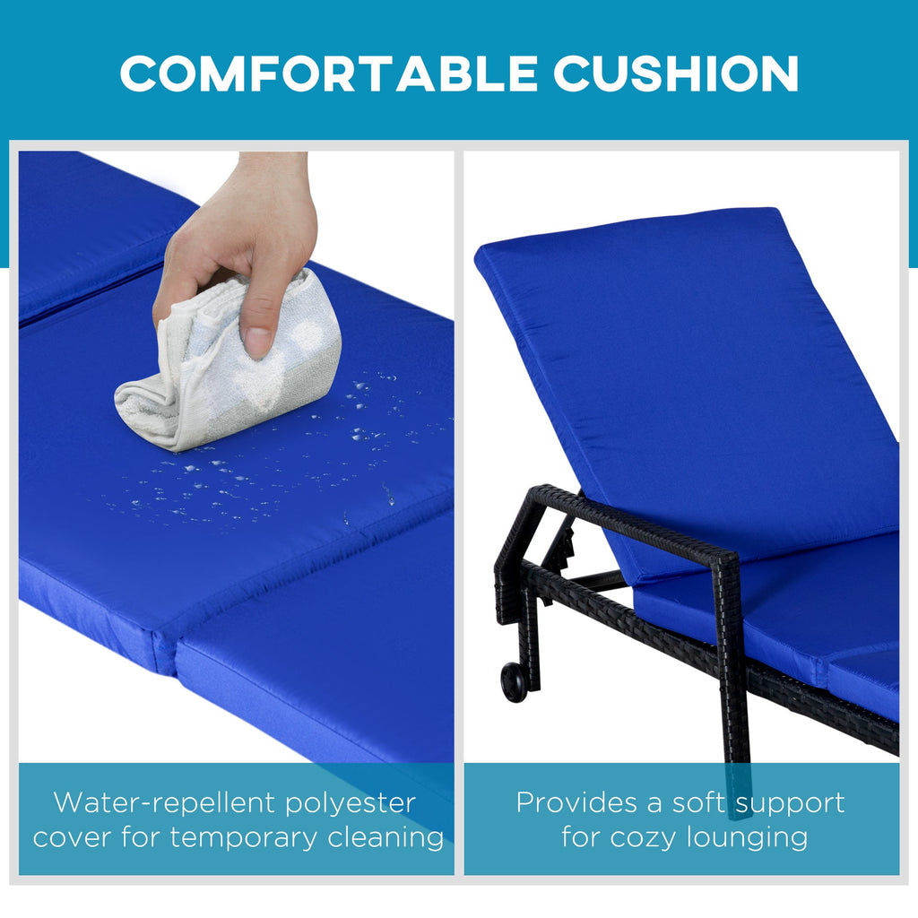 Relax in style and comfort with this adjustable wicker lounge chair, perfect for soaking up the sun by the pool, in the garden, or on the patio. Designed with a reclining backrest that offers five adjustable levels, this chaise lounge allows you to find the perfect angle for ultimate relaxation. Crafted with a sturdy metal frame and wrapped in durable, weather-resistant PE rattan wicker, this outdoor lounger is built to withstand the elements. The thoughtful design includes armrests and two flexible wheels, making it easy to move around your outdoor space as needed. Complete with a soft, padded cushion, this chaise lounge provides exceptional comfort, making it ideal for long afternoons spent reading, sunbathing, or simply unwinding. With an overall dimension of 28.7 inches in width, 78.7 inches in depth, and 18.9 inches in height, and a weight capacity of 352 lbs, this patio lounger is both stylish and practical for any outdoor retreat.