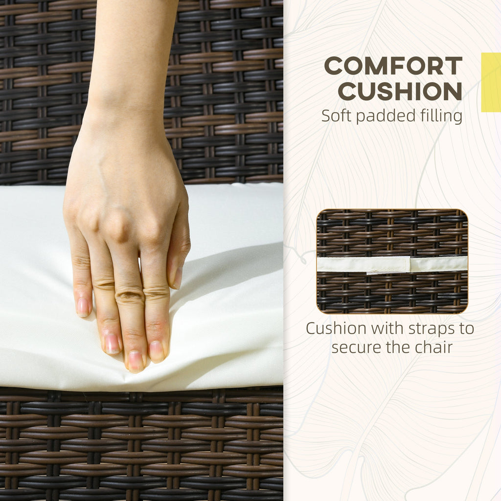 Enhance your outdoor seating area with this Two-Chair Patio Set, designed for both comfort and style. These wicker chairs feature a high backrest and a woven PE rattan seat, providing excellent support while you relax. The set includes soft, removable cushions with secure straps to keep them in place and zippered covers for easy washing. The ergonomic design and sleek weave blend seamlessly into a variety of outdoor spaces, including patios, gardens, balconies, and poolside areas. Built for durability, each chair is constructed with a powder-coated metal frame and handwoven twin half-round PE wicker, ensuring weather resistance and long-lasting use.