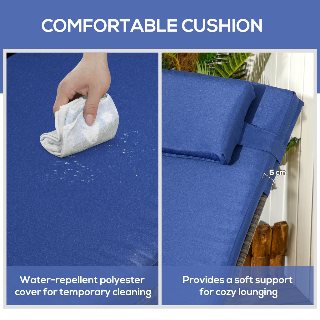Soft padded cushions and solid headrest pillows for maximum comfort while lounging.