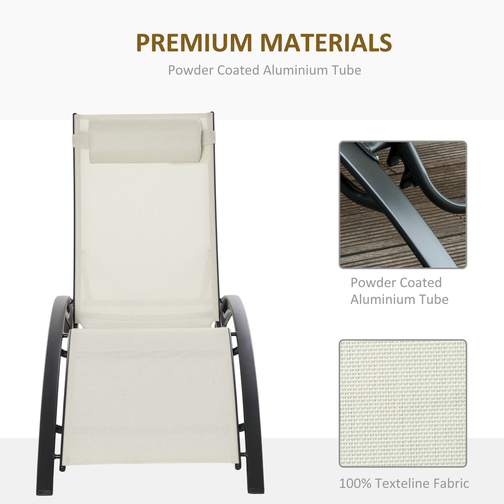 Experience ultimate relaxation with our Chaise Lounge Outdoor Pool Chairs, designed for comfort and durability. Perfect for your poolside, porch, or patio, these modern loungers feature an industrial-style aluminum frame that not only adds a sleek look but also ensures long-lasting use. The 5-position adjustable backrest allows you to select from five comfort levels, including a completely flat position, while thick padded seat and back cushions provide the perfect balance of comfort. The lightweight yet sturdy aluminum frame is paired with weather-resistant PP plastic legs for enhanced durability. The breathable mesh fabric sling offers both flexibility and durability for extended outdoor use. Additional features like a cotton-padded pillow headrest and curved armrests elevate your lounging experience, ensuring you enjoy maximum relaxation. Ideal for anyone seeking a stylish and functional outdoor lounger, these chairs are perfect for sunbathing, reading, or simply unwinding in the great outdoors.