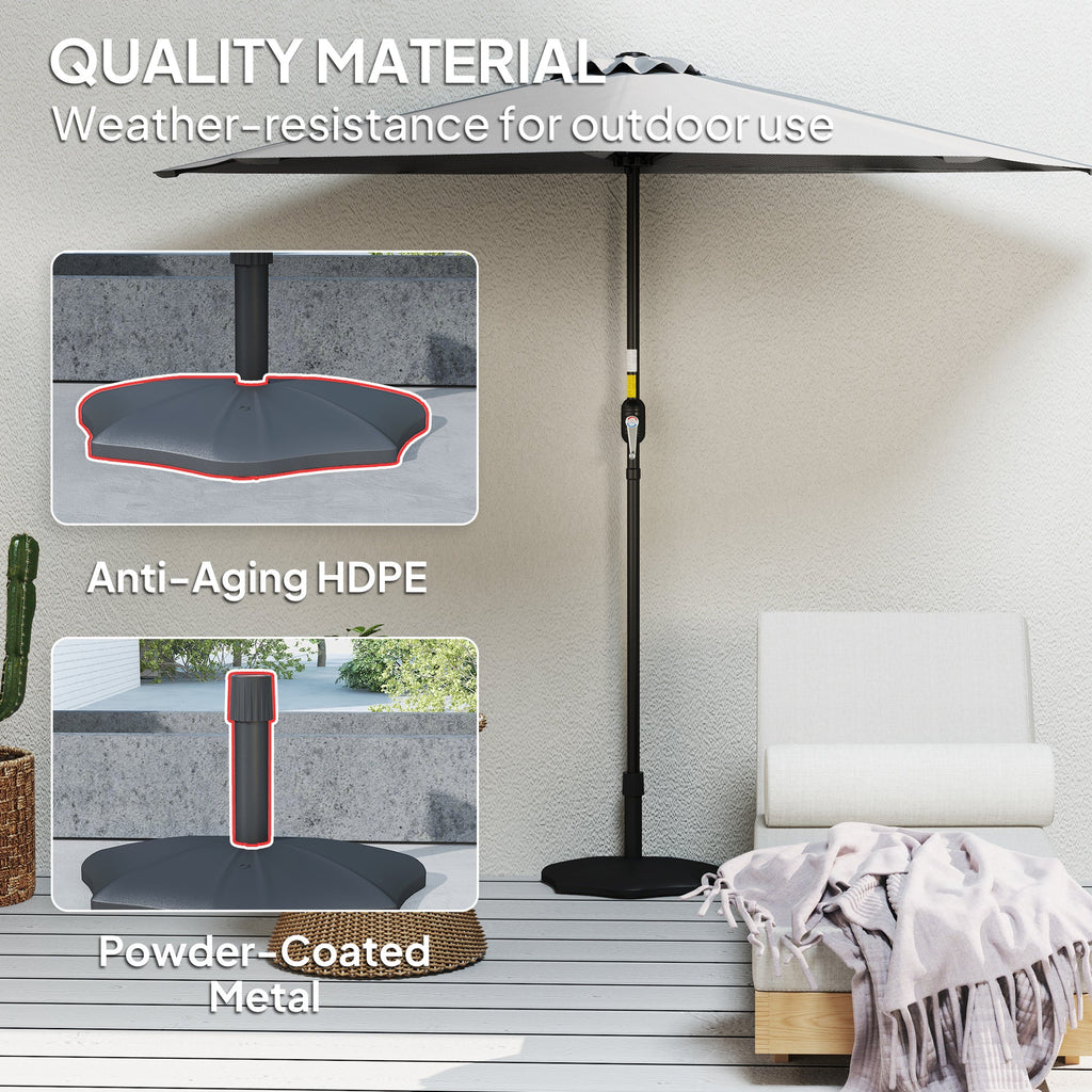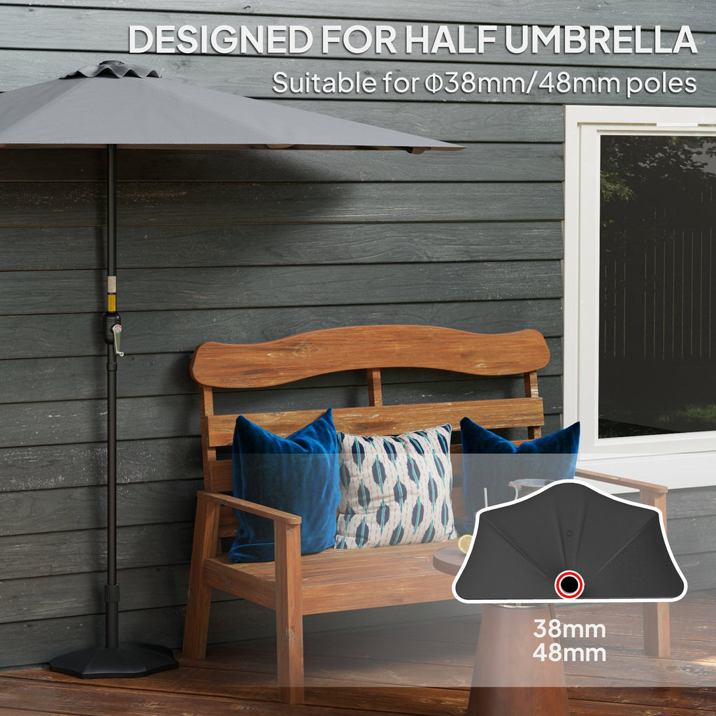 Ensure your half patio umbrella stays securely in place with this stable and practical umbrella base. Designed to fit umbrellas with a pole diameter of 1.5" or 1.9" (38, 48 mm), it provides a strong foundation for your outdoor setup. The base is filled with solid concrete, offering superior density compared to typical sand or water-filled bases, which results in a more compact and aesthetically pleasing design. Built for outdoor durability, the umbrella stand features a recyclable HDPE coating that is anti-aging and weather-resistant, ensuring it withstands the elements for years. The sleek powder-coated pole adds an extra layer of weather protection, making this base an ideal choice for your backyard or patio. It's compatible with popular Outsunny parasol parent SKUs X-84D-007 and X-84D-008, ensuring easy use with your existing umbrellas.
