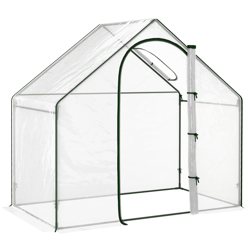 Create the perfect environment for your plants with this Compact Tunnel Greenhouse, designed for backyard use. Built with a heavy-duty steel frame, it provides reliable support and durability for long-term use. A 10 cm extended cover edge allows the plastic sheet to be buried in the ground for added stability. The clear plastic cover allows optimal sunlight to reach your plants while offering protection from wind and mild rain. A roll-up zippered front panel provides easy access and ventilation, and a rooftop vent promotes airflow to prevent overheating. Ideal for seedlings, young plants, or extending your growing season, this small greenhouse is perfect for hobby gardeners and plant lovers alike.