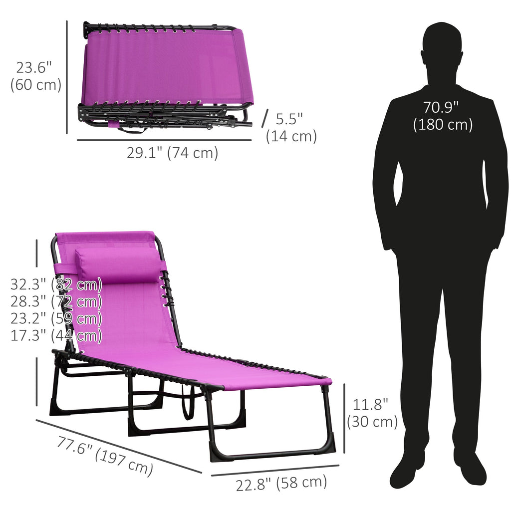 Relax in personalized comfort with our Adjustable Folding Patio Chaise Lounge Chair. Featuring a 4-level adjustable backrest, this recliner lets you sit up, lean back, or lay flat—perfect for sunbathing, reading, or napping outdoors. The lightweight tri-fold design makes it effortlessly portable and easy to store in car trunks or tight spaces. Built for durability, it features a powder-coated steel frame and breathable mesh fabric for cool, all-day lounging. Whether at the beach, pool, campsite, or backyard, this lounge chair adapts to your outdoor lifestyle.