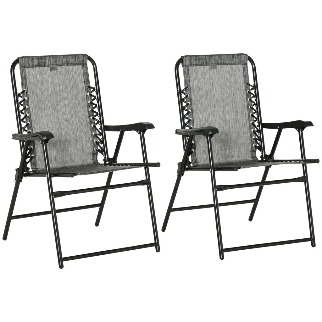 Make your outdoor adventures more comfortable with this set of two folding lawn chairs, perfect for camping, picnics, beach days, or relaxing on the patio. Designed with comfort and convenience in mind, each chair features ergonomic curved armrests, supportive bungee suspension, and a breathable mesh fabric backrest for hours of relaxed seating. The lightweight, foldable design makes transportation and storage a breeze—ideal for everything from road trips to backyard lounging. Crafted with a durable powder-coated steel frame and quick-drying mesh, these chairs are built to withstand outdoor conditions and offer lasting reliability throughout the seasons.