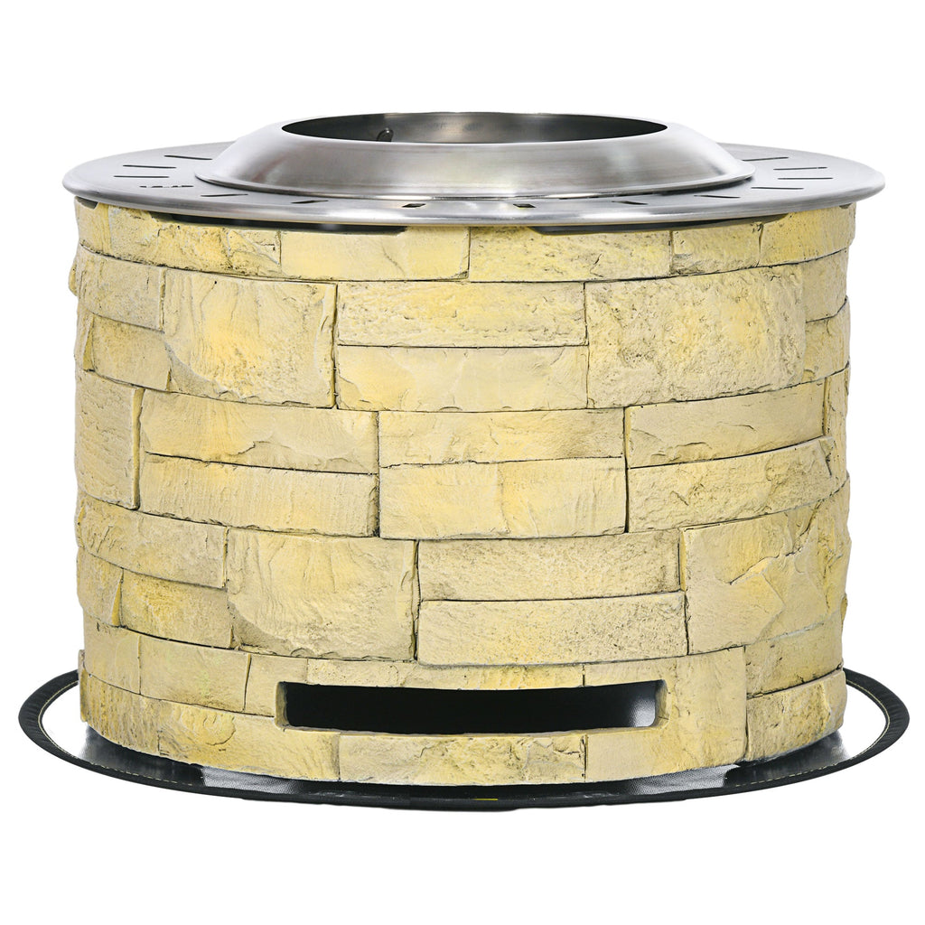 Enjoy a cozy campfire experience without the smoke with this Smokeless Wood-Burning Fire Pit. Engineered with a secondary combustion system, it pulls in oxygen through bottom vents and channels it up through the double-walled design, creating a hotter burn that eliminates smoke before it escapes. Crafted with a rustic magnesium oxide outer shell and stainless steel combustor, this outdoor fire pit combines aesthetic charm with high durability—perfect for the backyard, garden, or campsite. It includes a heat-insulating aluminum foil mat to protect the ground underneath and catch any stray embers, offering added safety and peace of mind. Whether you're camping or gathering on your patio, enjoy a clean, smoke-free fire.