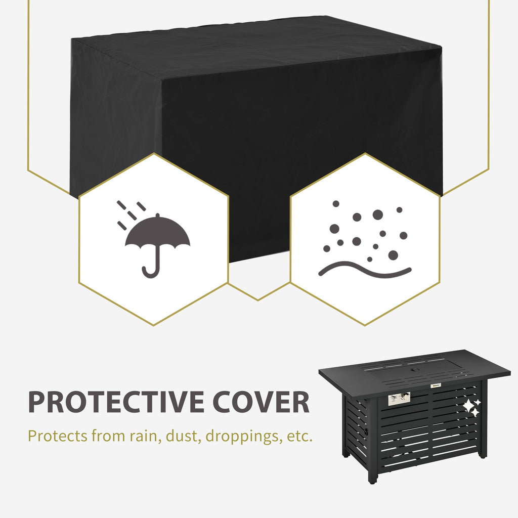 Elevate your outdoor space with this multifunctional gas fire pit table that offers warmth, ambiance, and practicality. When covered, the tabletop doubles as a dining or coffee table, making it ideal for hosting meals, drinks, or cozy conversations. The smokeless 50,000 BTU stainless steel burner provides clean, powerful heat, while the included glass wind guard enhances flame stability and guest safety. The electric pulse ignition system and flame control knob allow for easy operation (AAA battery not included). A 20-lb propane tank (not included) fits neatly behind a secure compartment door and is held in place with a fixing knob. When not in use, the waterproof and dustproof cover keeps your fire pit protected from the elements.