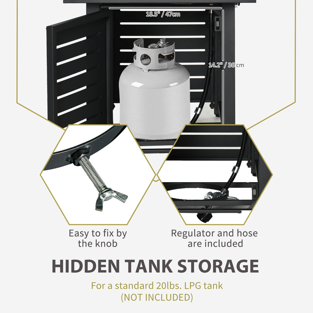 Hidden Tank Storage: Bottom compartment securely holds a 20-lb propane tank with fixing knob