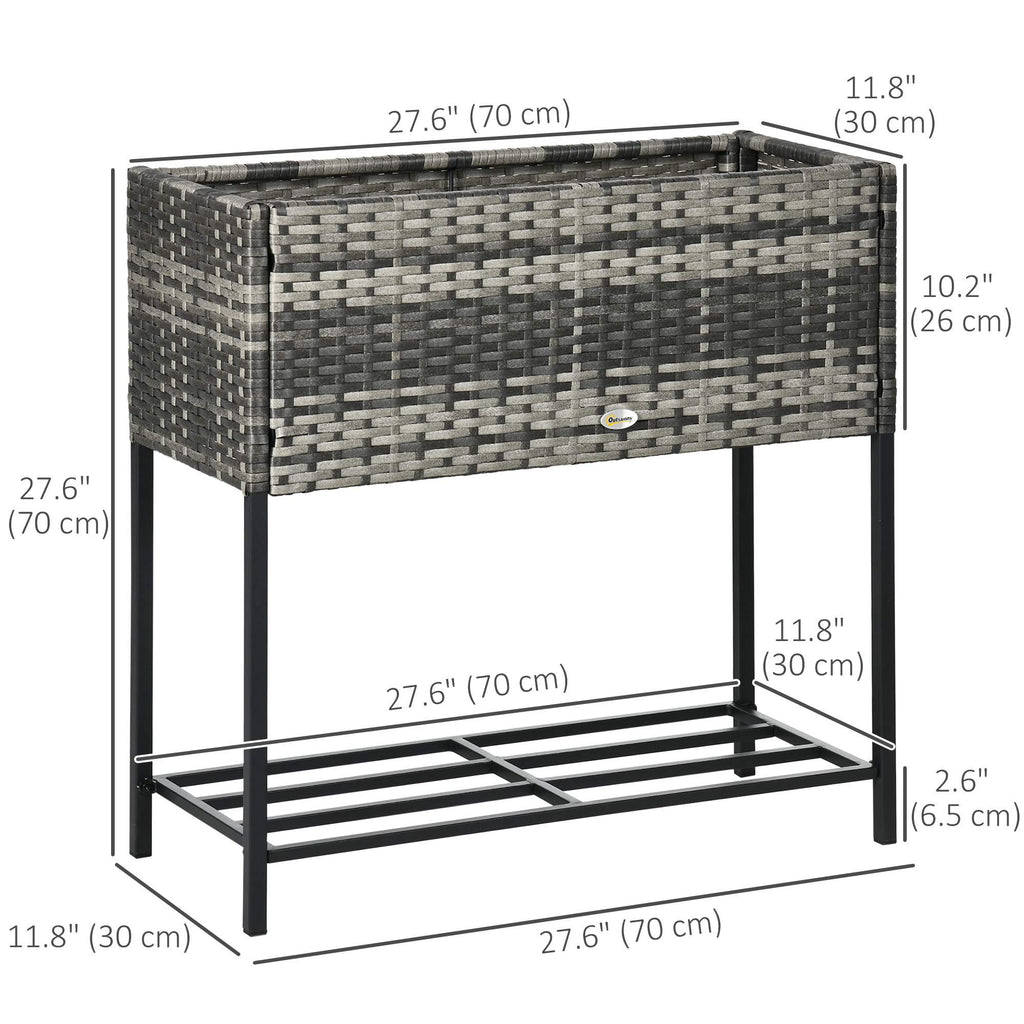 Create a beautiful garden display with this elegant raised garden bed, built to last with a rustic rattan style and a sturdy metal frame. The high-density polyethylene (HDPE) construction makes this planter box more durable than traditional materials, ensuring it can withstand the elements for years. Perfect for flowers, vegetables, or any of your favorite plants, this raised garden bed can be placed indoors or outdoors. The included storage shelf offers a convenient place to keep your garden tools, making gardening more accessible and organized. With an elevated design, you’ll save your knees and back from bending over, while also protecting your plants from house pets. Whether you’re planting inside during the winter or cultivating outside in warmer months, this planter box helps you extend your gardening season all year long!