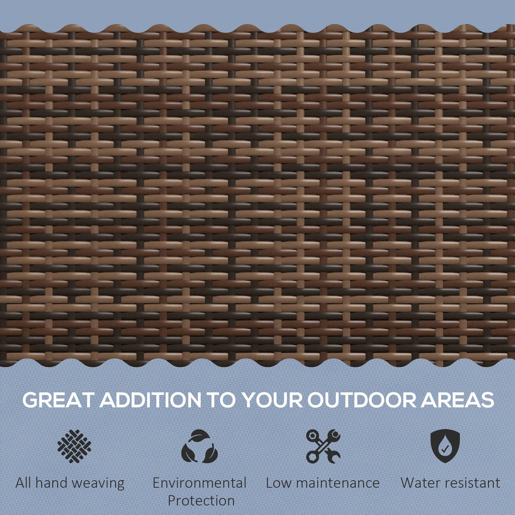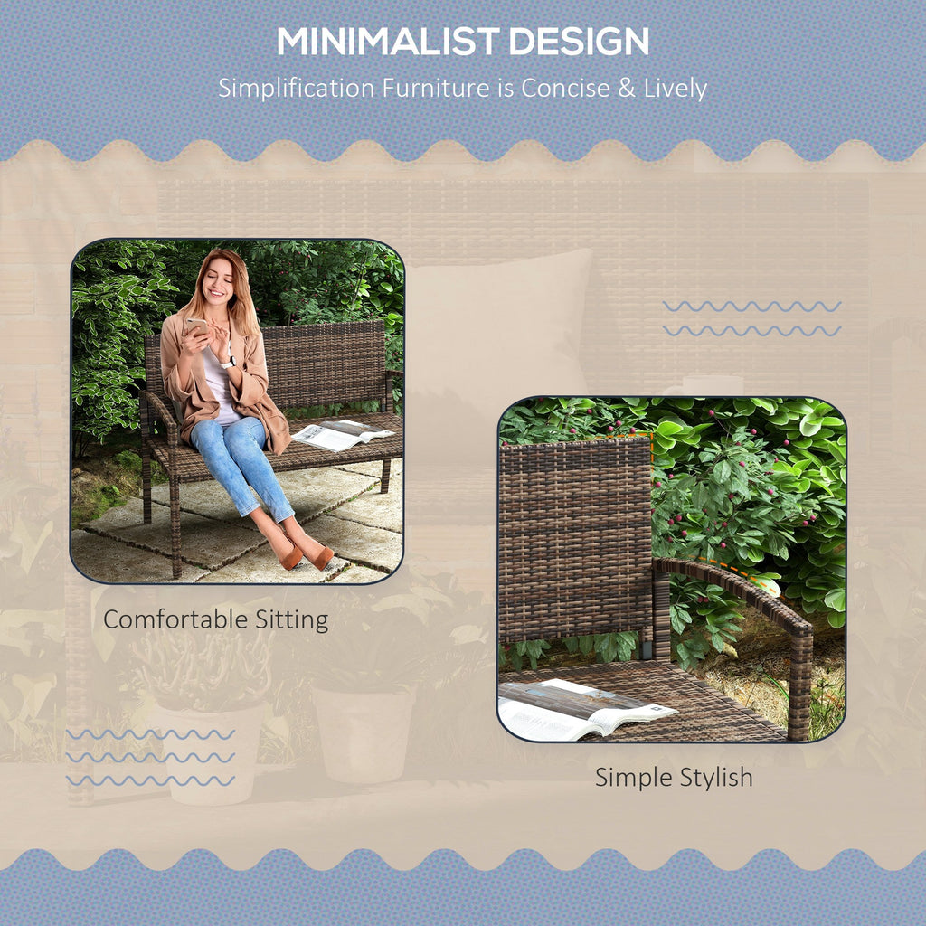 Add charm and comfort to your outdoor space with this compact yet functional Patio Couch. Perfect for front porches, balconies, and small patios, this two-seater offers cozy relaxation in a stylish package. Hand-woven with PE rattan, it features the classic look of wicker with a modern, water-resistant design that stands up to outdoor elements. The durable steel frame provides strong support, allowing the bench to hold up to 704 lbs (320 kg), making it as sturdy as it is attractive. Designed with comfort in mind, it includes gently curved armrests and a high backrest to support your body as you unwind. Assembly is quick and easy with included hardware and clear instructions. This outdoor loveseat blends practicality with elegance, making it a perfect choice for compact outdoor seating.