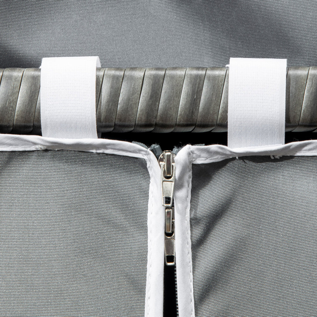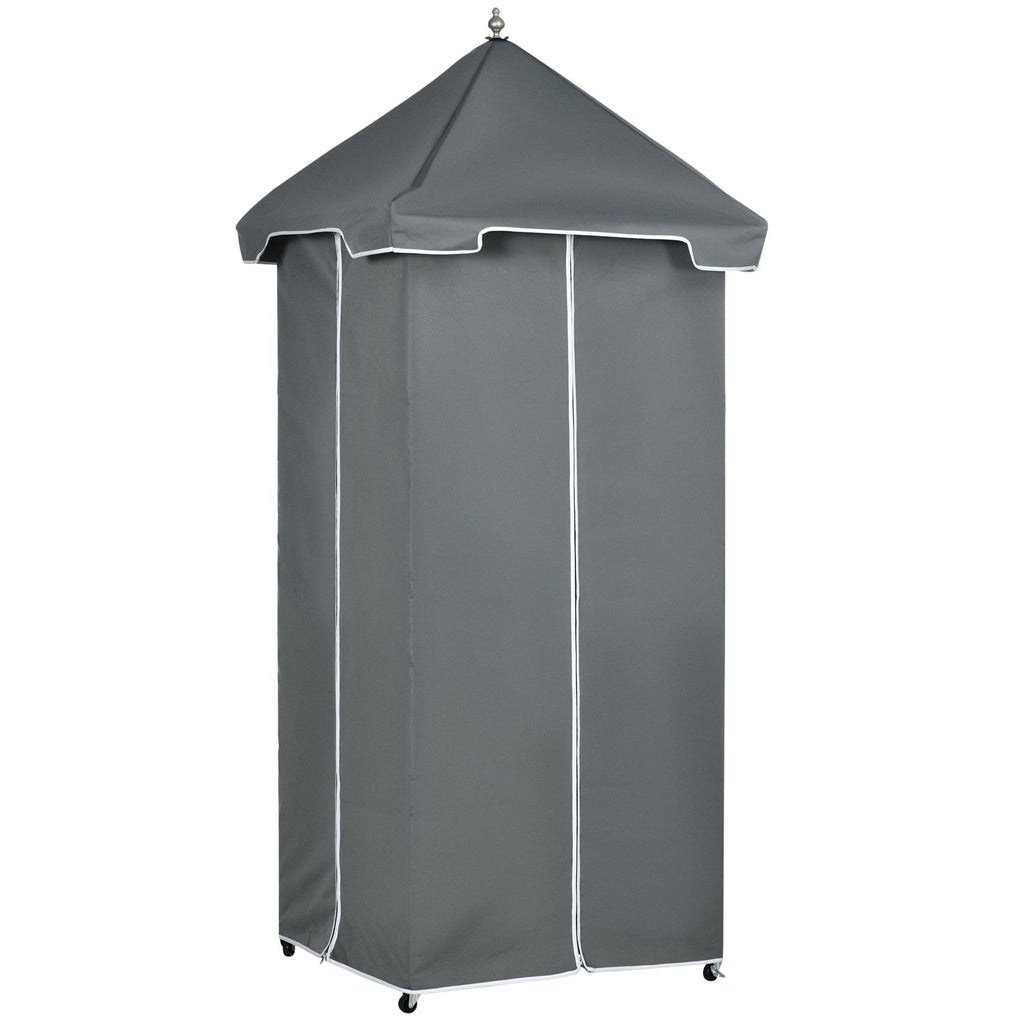 Covered Towel Valet: Zip-up canopy protects towels and accessories from rain and sun exposure.