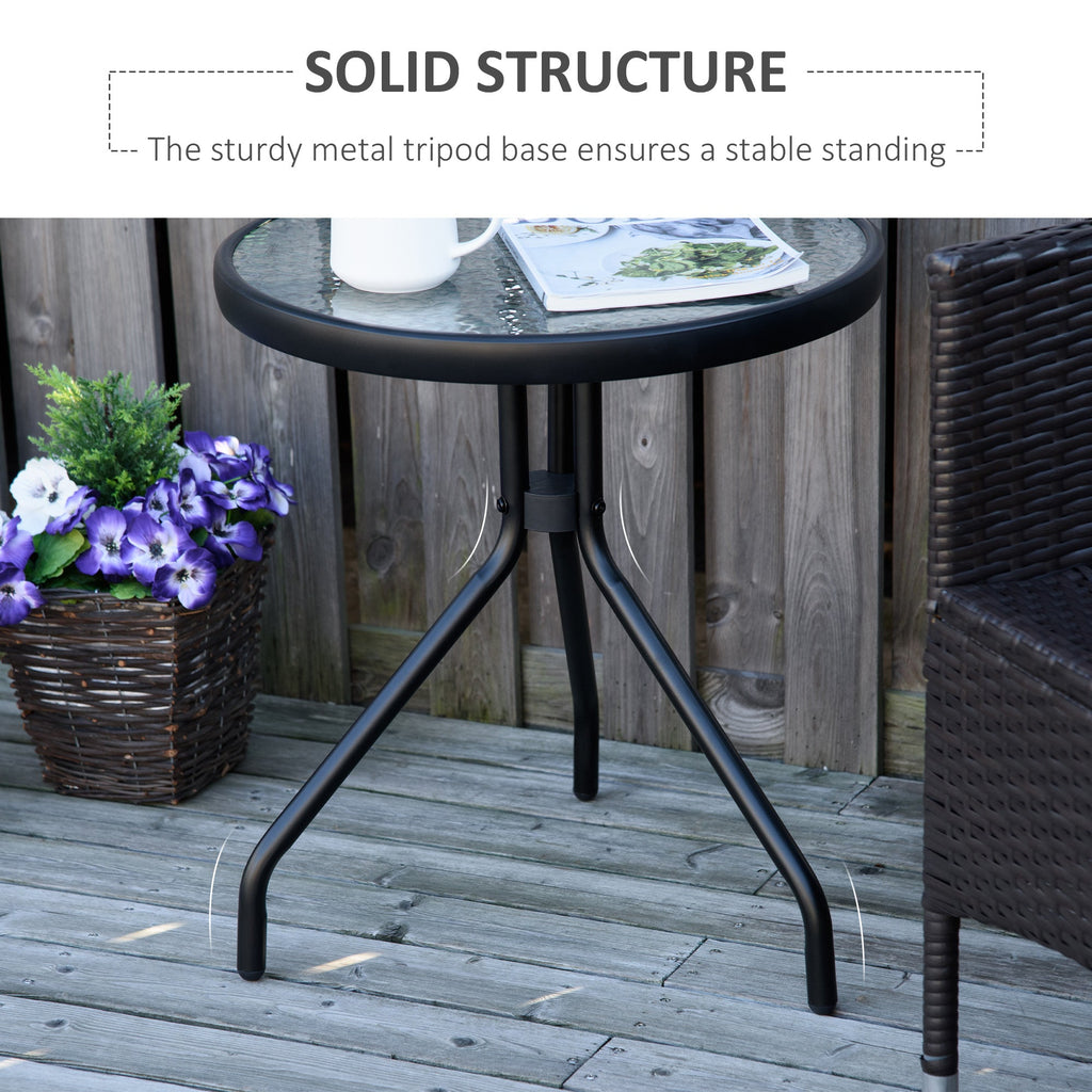Quality Materials: Powder-coated metal frame and three sturdy legs, with a 5mm tempered glass tabletop for durability and outdoor resistance.