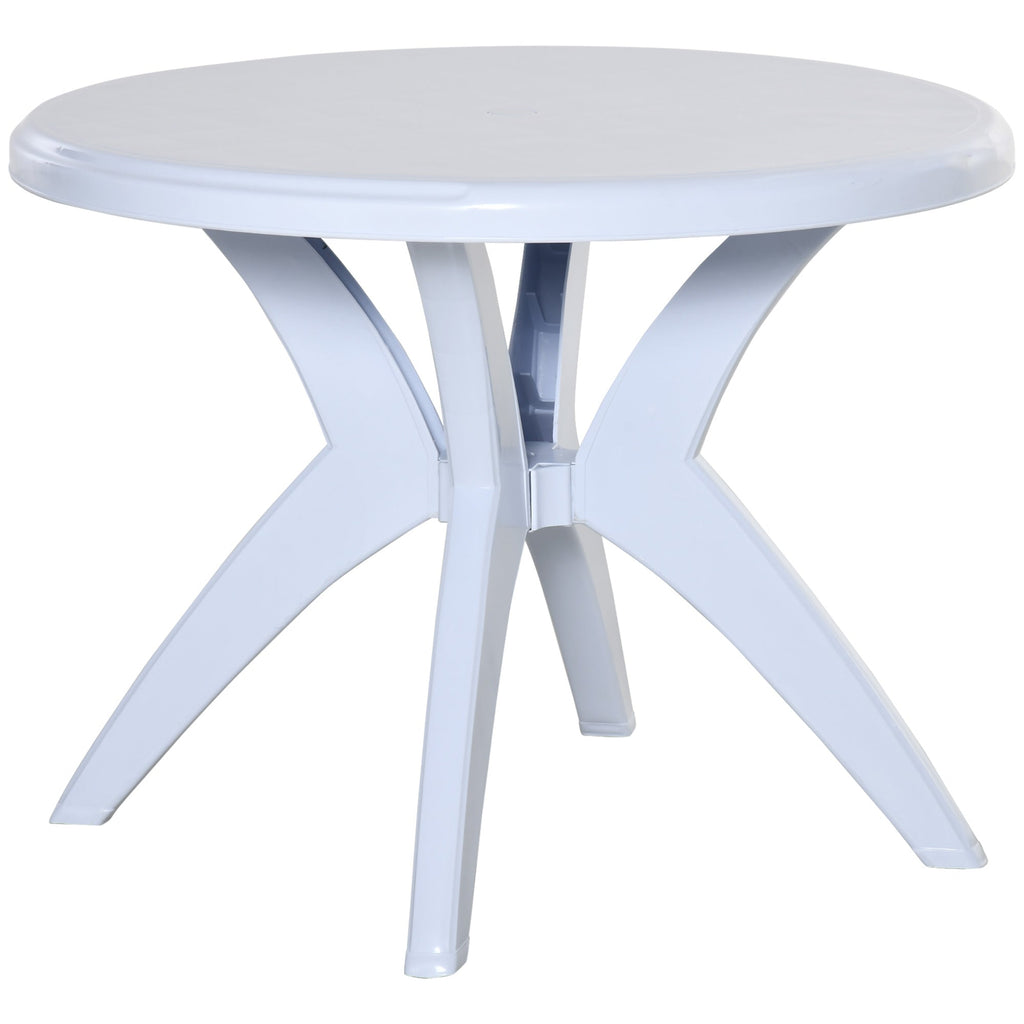 This versatile patio dining table is designed to enhance your outdoor space with its built-in umbrella hole and fastening ring slot for easy umbrella installation and secure placement. With the ability to swap out umbrellas for different colors or styles to suit the season or occasion (umbrella not included), this table offers protection from sun and glare. Perfect for various outdoor activities, it can serve as a poolside dining area, a spot for afternoon tea, or even a game table for backyard picnics or porch fun. Made from durable plastic, it’s easy to clean and won’t absorb water or retain spills. The non-slip foot pads protect your patio floors and provide stability on uneven ground.