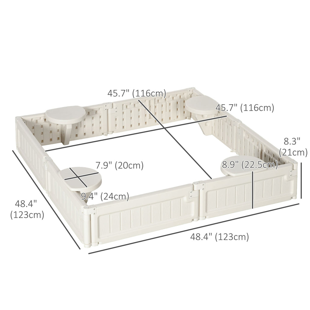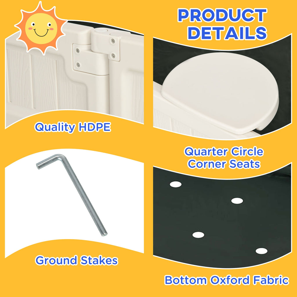 This DIY sandbox with cover offers endless fun and creativity for kids. With 8 easy-to-assemble panels and ground stakes, you can customize the sandbox into various shapes and sizes, fostering creativity, imagination, and teamwork as children engage in digging and building play. The sandbox features 4 quarter-circle corner seats, providing a comfortable place for children to sit without being in the sand. Made from durable HDPE material, this sandbox is built to withstand outdoor conditions year-round, ensuring it won’t rot, warp, chip, or splinter like traditional wood. Assembly is quick and tool-free—simply snap the panels together, install the liner, and fill with sand. The spacious design allows for multiple children to play at once, making it the perfect entertainment spot for your backyard.