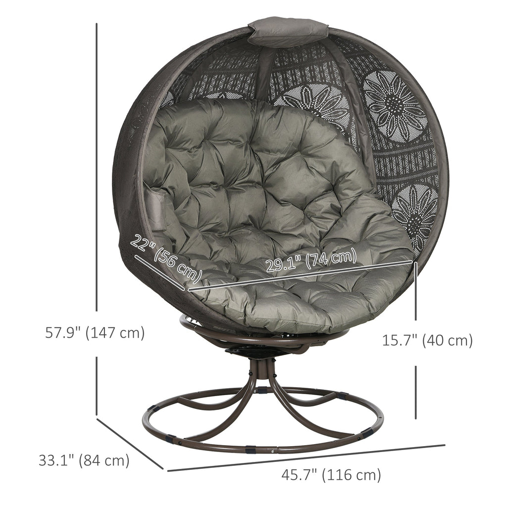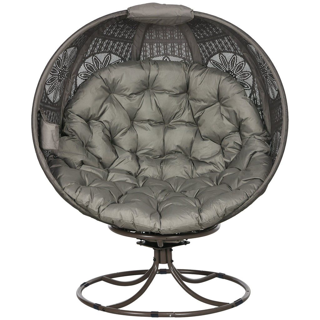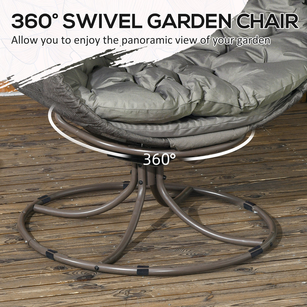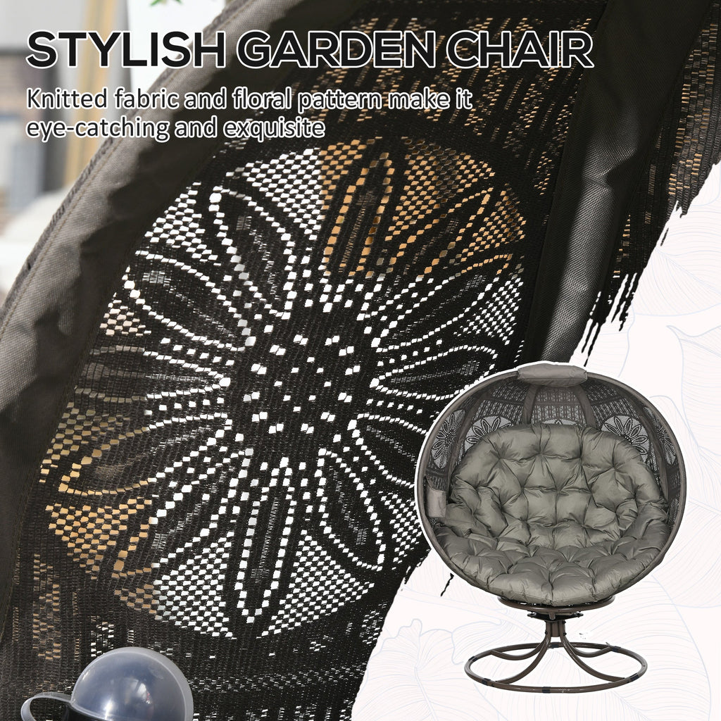 Relax in style and comfort with this elegant egg chair with stand. Crafted with a cozy structure and fitted with a bottom pad and a large soft cushion, it provides ultimate relaxation for outdoor or indoor use. The knitted polyester fabric, featuring an eye-catching floral pattern, adds a touch of sophistication to any space. The 360° swivel feature allows you to effortlessly rotate, offering panoramic views of your garden or allowing for easy conversations with friends and family. The convenient cupholder ensures your favorite beverage is always within reach while you unwind. After use, the foldable basket frame allows for easy storage and portability, making it perfect for compact spaces.