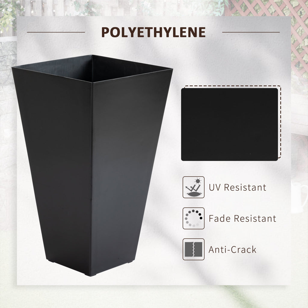 Elevate your outdoor space with this set of three tall square-shaped flower pots, designed to complement any garden or patio. The matte finish adds a modern touch while allowing these planters to seamlessly blend into various outdoor settings. Each pot features a drainage hole with a plug to prevent water buildup, ensuring your plants are well-maintained. Ideal for showcasing vibrant flowers, fresh herbs, or vegetables, these durable UV-resistant planters are built to withstand outdoor elements and provide long-lasting beauty and functionality.