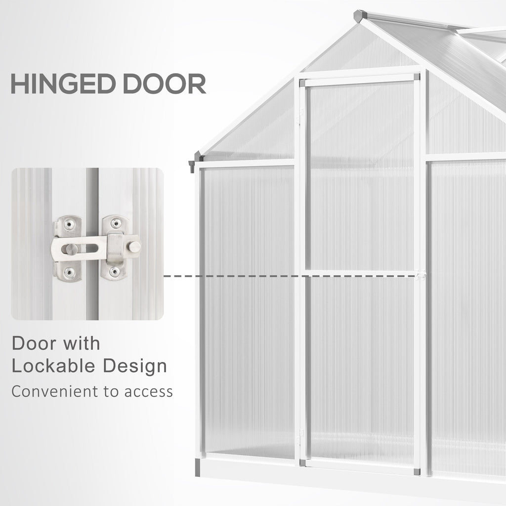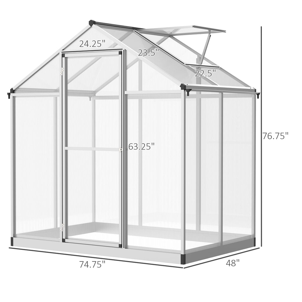 The Winter-Grade Walk-In Greenhouse is your personal plant sanctuary, offering year-round protection from cold, wind, rain, and even wild animals. Built with 4mm thick polycarbonate walls, this greenhouse allows 90% light transmission while blocking harmful UV rays, ensuring your plants thrive in a controlled environment. Whether you're growing vegetables, herbs, flowers, or tropical saplings, this greenhouse provides the perfect conditions to keep your plants in the soil all year round. The adjustable roof vent lets you regulate humidity and fresh air intake, giving you complete control over your growing space. The durable aluminum frame and reinforced poles prevent corrosion, ensuring a long-lasting and easy-to-maintain structure. Additionally, the built-in rain gutters collect natural rainwater, helping you save on water costs and be more self-sufficient. With a spacious walk-in design (4' L x 6.2' W x 6.4' H), this greenhouse provides ample room for your plants to grow.