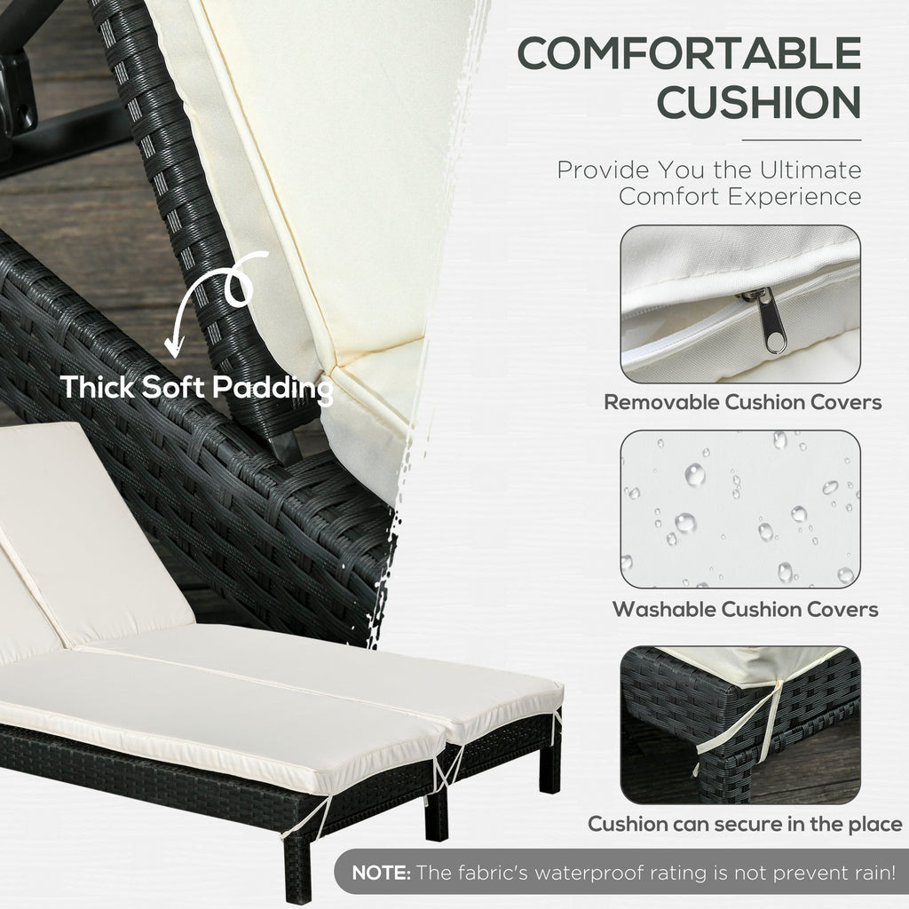 Relax in style and comfort with the 2-Person Rattan Lounge Set, designed for ultimate outdoor relaxation. Perfect for poolside lounging, patios, or holiday resorts, this innovative 2-in-1 lounge set features wide-sized chairs with adjustable reclining backrests, allowing you to choose from 5 different positions. Whether you prefer sitting up, leaning back, or lying flat, this lounge set has got you covered. The soft, plush cushions are weather-resistant and washable, providing comfort for hours. Handwoven with durable PE rattan and featuring a powder-coated steel frame, this lounge set offers UV and weather resistance, ensuring long-lasting enjoyment.