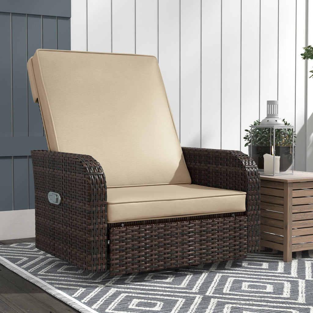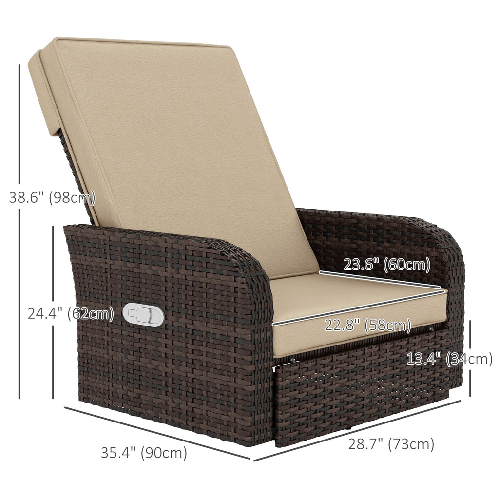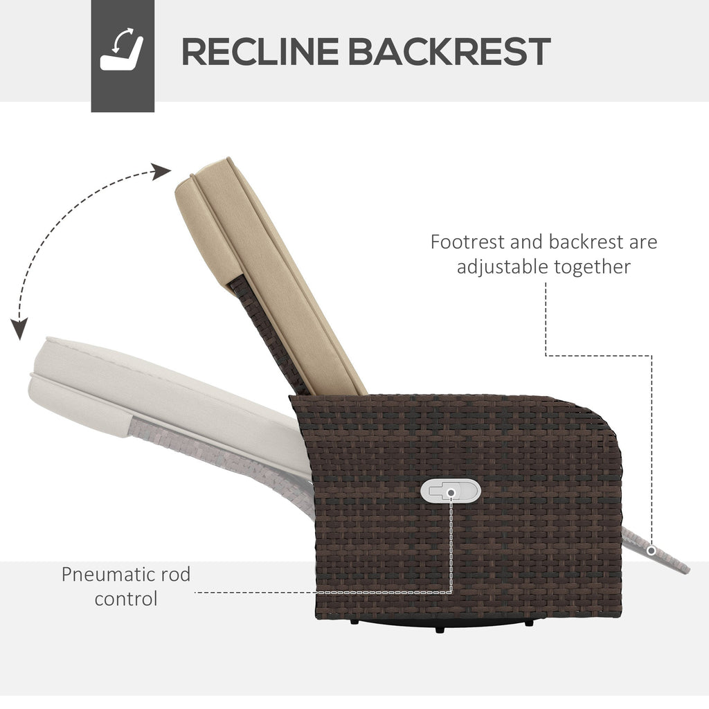 Upgrade your outdoor space with the 360-Degree Swivel Outdoor Chair. Perfect for your patio, porch, or garden, this chair offers both style and comfort. Featuring a smooth 360-degree swivel, you can easily turn and enjoy the view from any angle, making it ideal for lounging or engaging in conversation. The pneumatic-controlled reclining backrest and footrest allow you to find the perfect position for relaxation, whether you're reading, sipping coffee, or enjoying the sun. The soft, padded cushions are designed to secure firmly to the chair, offering hours of comfort without sacrificing style. Built to last, the chair is crafted with a sturdy metal frame, a powder-coated finish, and wrapped in PE rattan wicker, ensuring it withstands the elements and remains a stylish addition to your outdoor décor.