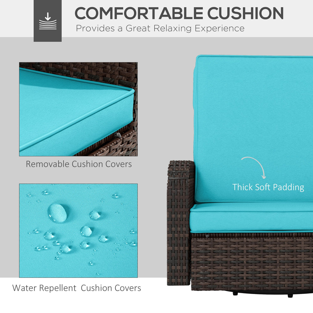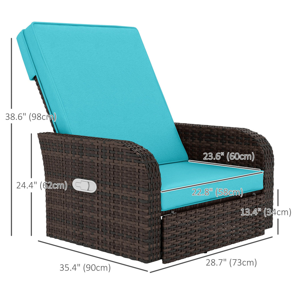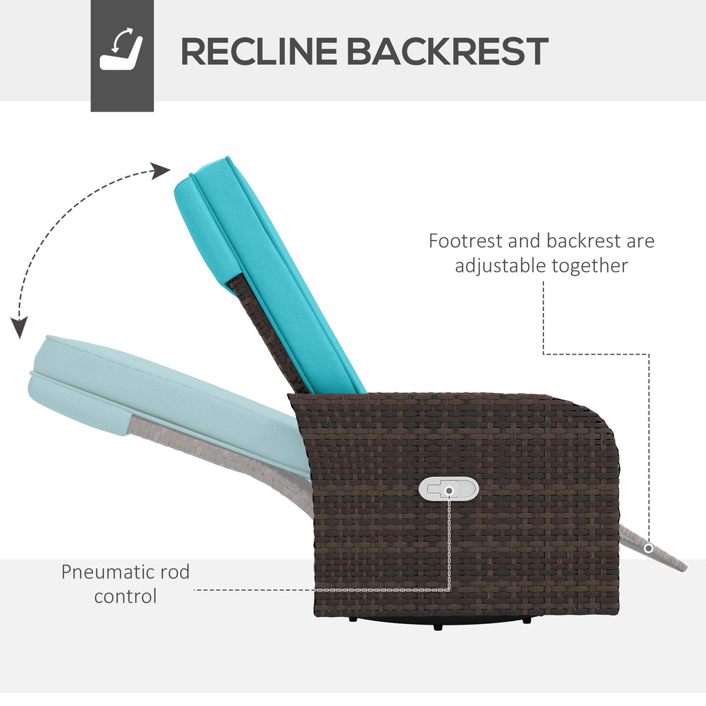Enhance your outdoor living space with the 360-Degree Swivel Outdoor Chair. Combining comfort and style, this chair features a smooth 360-degree swivel that allows you to easily adjust your position, whether you're enjoying the sun or chatting with friends. The reclining backrest and adjustable footrest, controlled by a pneumatic rod, provide ultimate relaxation and ensure the perfect seating angle for lounging, reading, or sipping coffee. The chair is equipped with soft, padded cushions that are secured with fabric covers, providing hours of comfort while maintaining a chic, classic aesthetic. Crafted for durability, the chair is built with a powder-coated metal frame and wrapped in weather-resistant PE rattan wicker, making it a robust addition to your outdoor space. Whether placed by the pool, on the porch, or in the garden, this chair is ready to withstand the elements and offer stylish relaxation.