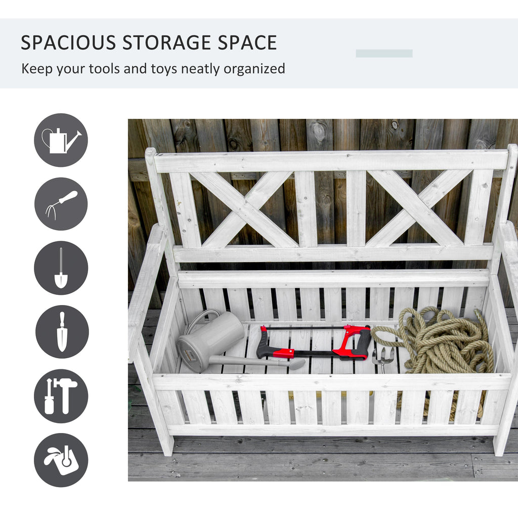 Bring style and function to your outdoor space with this multi-functional wooden storage bench. Designed to complement porches, patios, gardens, or poolside areas, it offers both comfortable seating and concealed storage. The 29-gallon compartment beneath the seat provides a practical place to store gardening tools, cushions, toys, and more. Crafted from solid fir wood with a weather-resistant finish, this bench comfortably seats two adults, complete with a high backrest and supportive armrests for added relaxation.