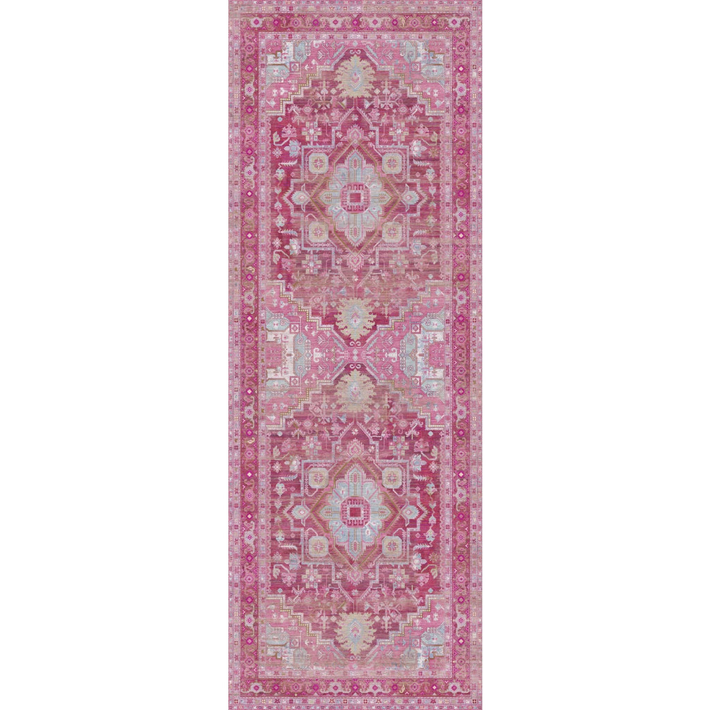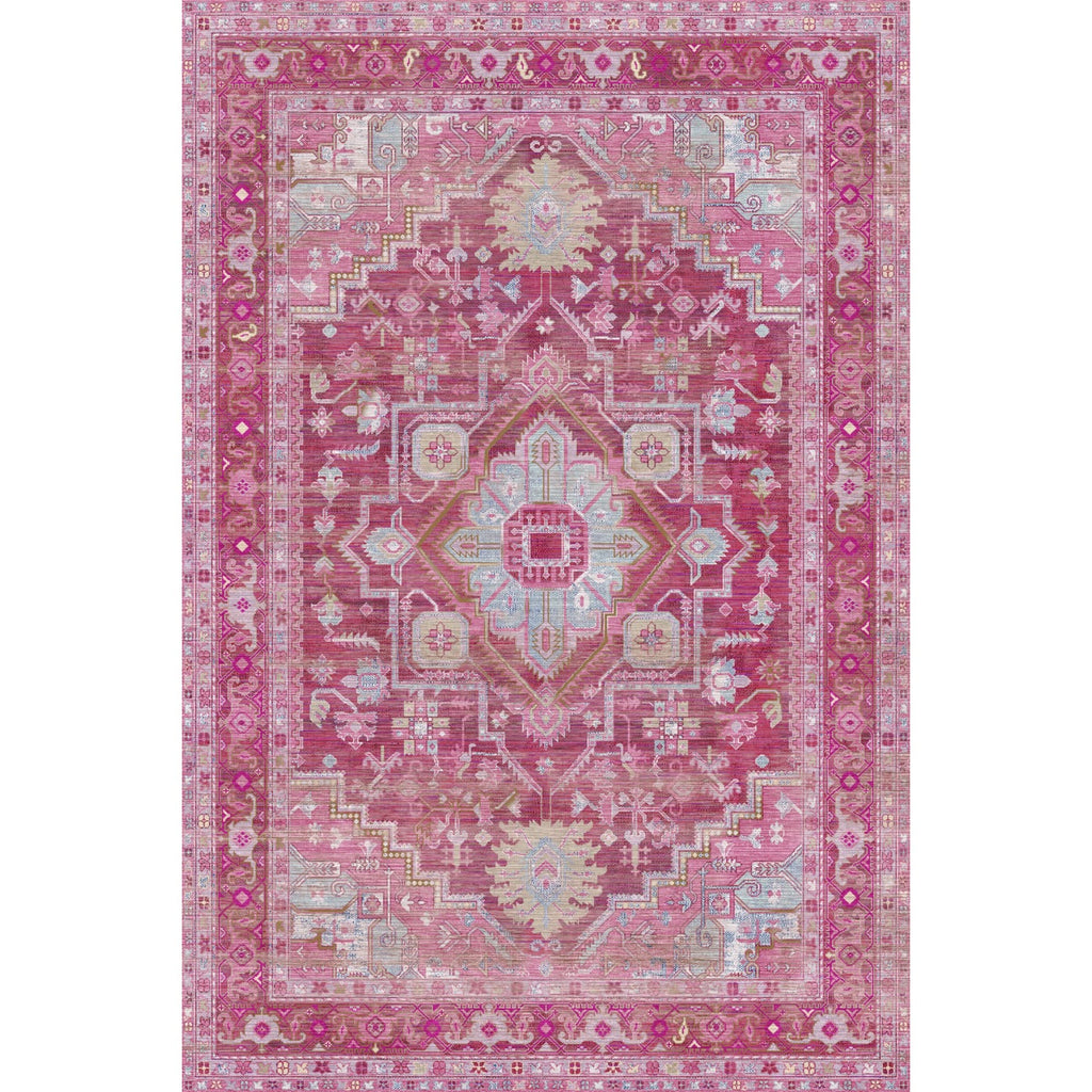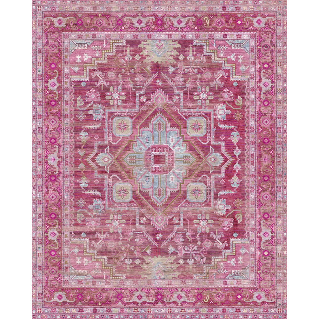 Add a touch of elegance and charm to your home with the Ozana Pink Teal Rug, a Persian-inspired masterpiece that blends timeless design with modern practicality. Featuring a harmonious mix of pink, burgundy, blue, dark brown, and light green, this rug brings warmth, color, and sophistication to any room.