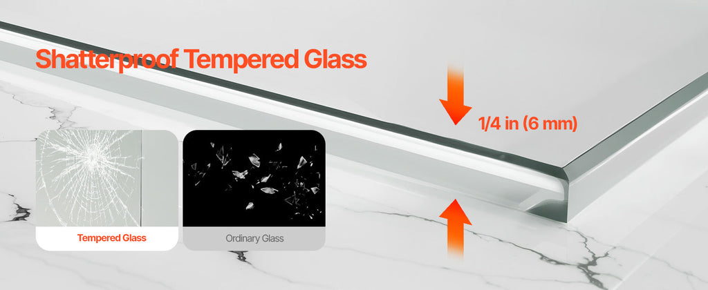 - Sturdy and Secure: Crafted from 0.23 in/6 mm thick shatterproof tempered glass, this frameless bathtub shower door meets SGCC standards. Even in the rare event of breakage, the glass remains intact without shattering, giving you maximum protection