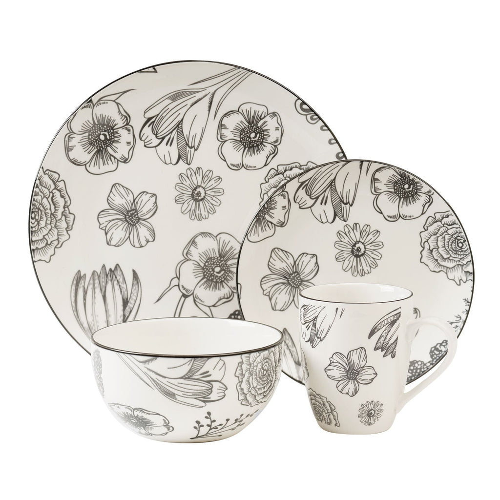 Total Pieces: 16 pieces (4 dinner plates, 4 salad plates, 4 bowls, 4 mugs)