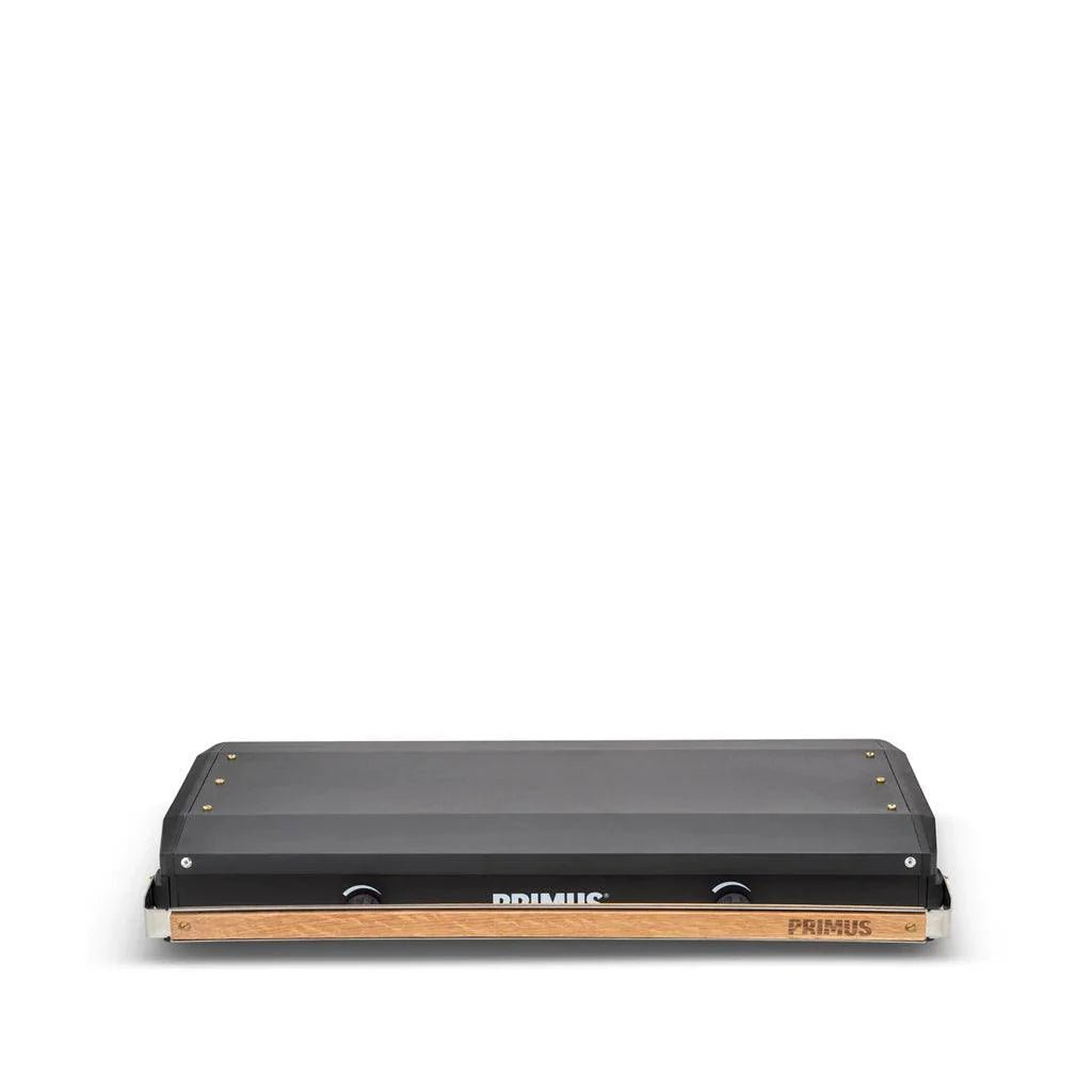 The Primus Kinjia Camping Stove is a compact, lightweight dual-burner gas stove designed for outdoor cooking anywhere. Perfect for campsite cooking, it can comfortably hold two large pots and deliver enough food to feed a group. Each burner operates independently, allowing precise temperature control for simmering sauces or boiling water. Constructed from durable die-cast aluminum and stainless steel, the stove is built to last and includes removable pot supports and a drip tray for easy cleaning. Its slim profile and lockable wood-trimmed handle make it highly portable and easy to store.