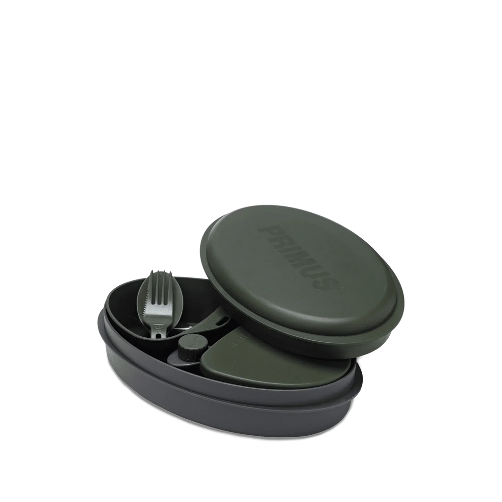 The Primus Meal Set is a versatile and compact eight-piece dining and cooking kit designed for outdoor adventures. Perfect for backpacking, camping, or picnics, it allows you to separate ingredients, store liquids and spices, and enjoy a complete meal in the great outdoors. All items nest together for convenient storage and transport, making it an ideal choice for those who want a full meal setup without added bulk.