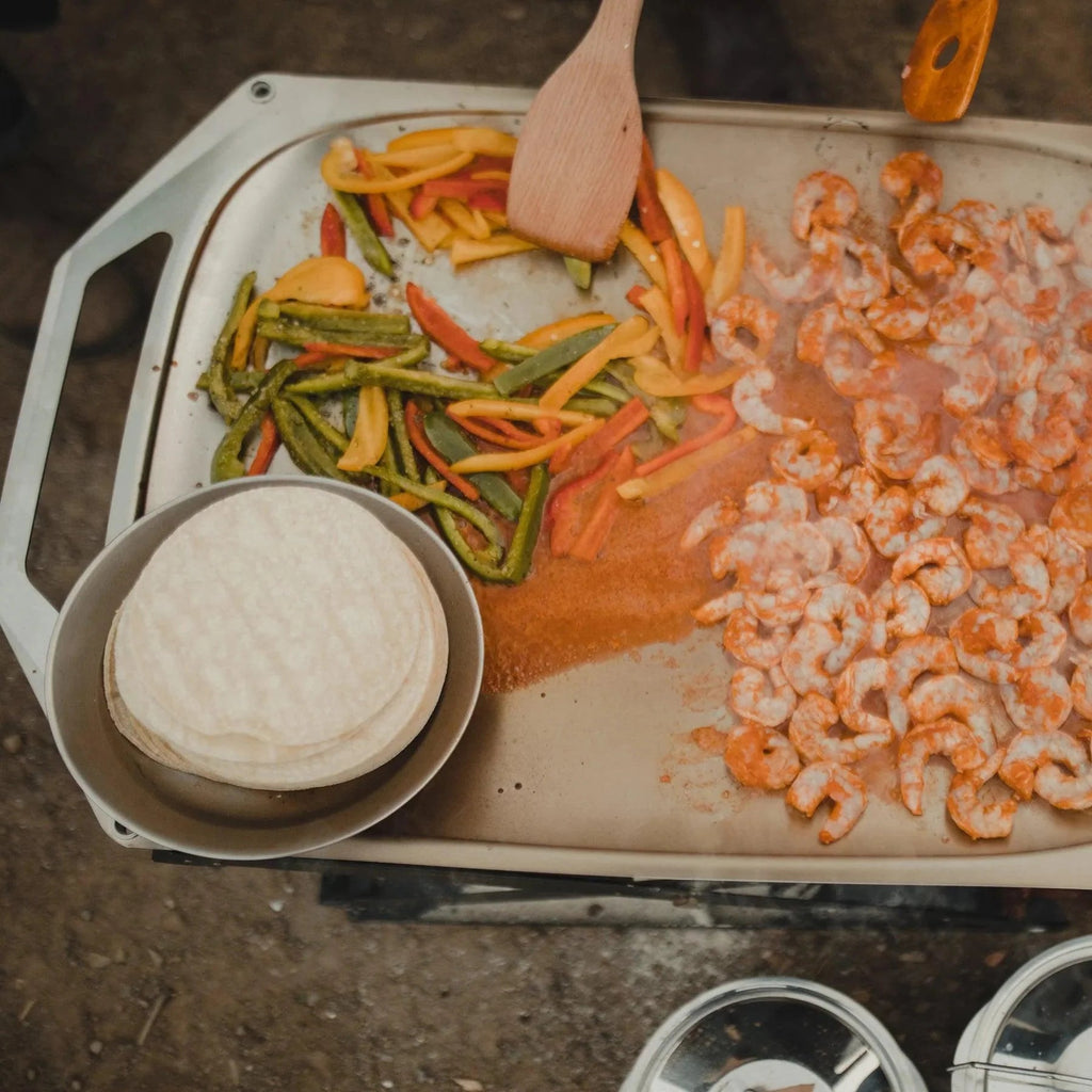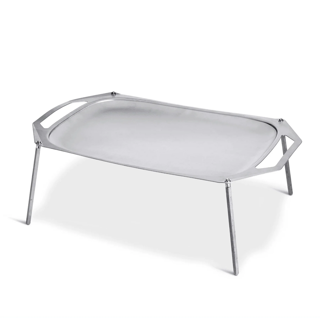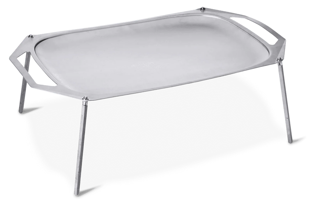 This unique Primus Open Fire Pan provides unlimited options for open fire cooking—stir fry, grill, sear, sauté, or use as a camp griddle! Designed for outdoor enthusiasts, it delivers authentic flame cooking while offering durability and control. The three-layer stainless steel construction with an aluminum core ensures even heat distribution, while the rectangular shape lets you cook multiple foods at the same time. Side handles make it easy to maneuver over the fire, and detachable legs give you the flexibility to cook directly over an open flame or place the pan on a grill.