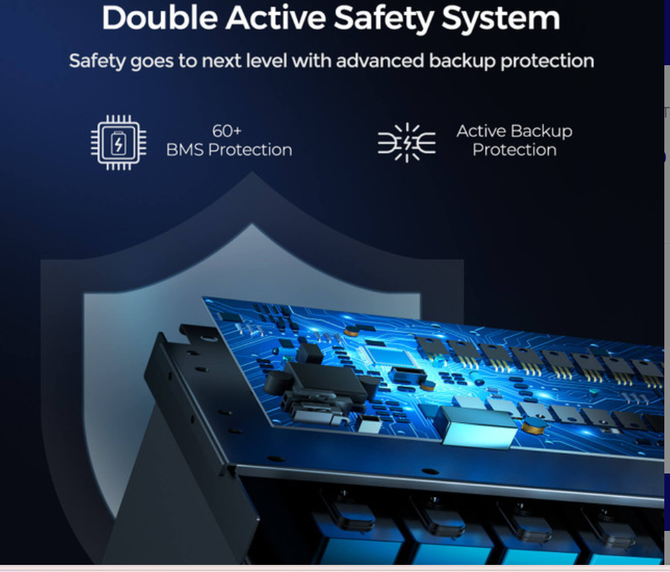 The advanced automotive-grade Battery Management System (BMS) offers over 60 protection alerts, safeguarding against overcharge, over-discharge, over-current, and short-circuits. Its active backup protection responds 40x faster than traditional systems, preventing overheating and extending battery life beyond 5000 cycles (80% DOD) or up to 10 years. The replaceable BMS design simplifies maintenance, enhancing long-term reliability.