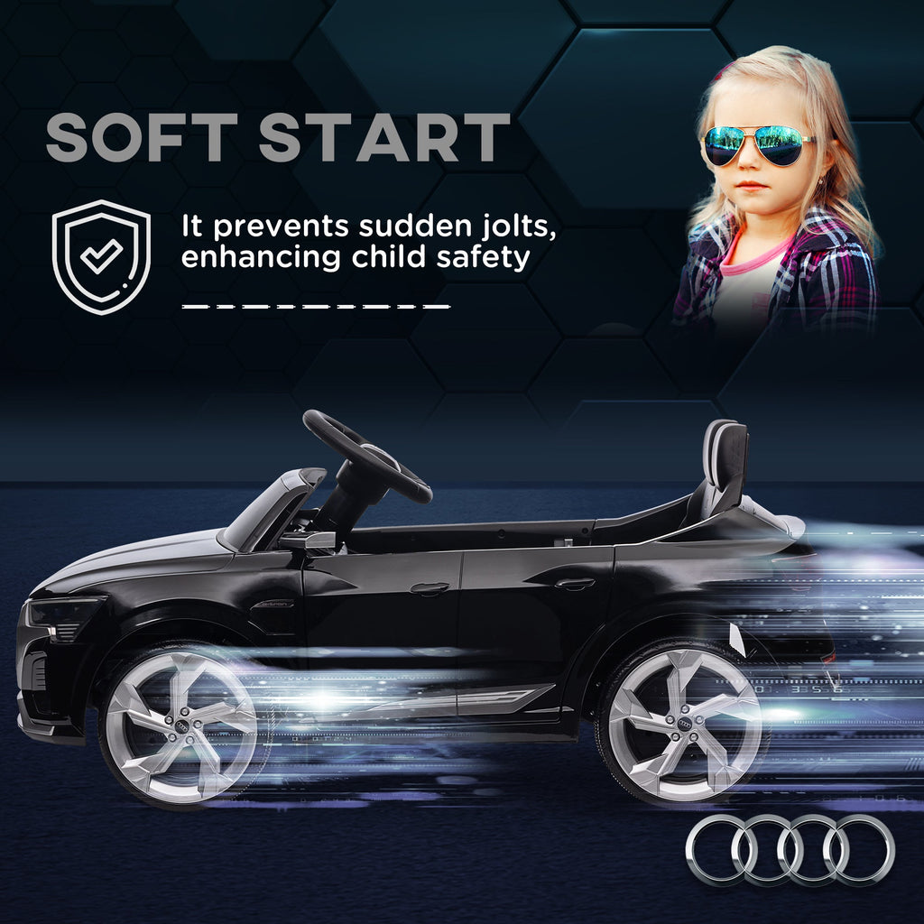 Experience the thrill of driving in style with this officially licensed 12V Audi Q8 etron Sportback electric car for kids. Combining sleek Audi design with cutting-edge features, this ride-on car offers a luxurious and safe driving experience for young adventurers. It comes equipped with dual operation modes: a remote control for parents to guide the ride or manual driving for kids to navigate on their own. Featuring realistic interactive elements, this kids' car includes two working headlights, a horn, and built-in music, enhancing playtime and making each ride exciting. The four wheels are designed with spring suspension for a smooth, stable ride, while the slow start mechanism ensures a gentle, controlled takeoff. Suitable for a variety of surfaces from asphalt to cement, this ride-on car is perfect for kids to enjoy endless fun and adventure. With a maximum weight capacity of 66 lbs (30 kg) and overall dimensions of 38.6"L x 19.5"W x 16.9"H, it's the perfect vehicle for young drivers. Assembly is required.