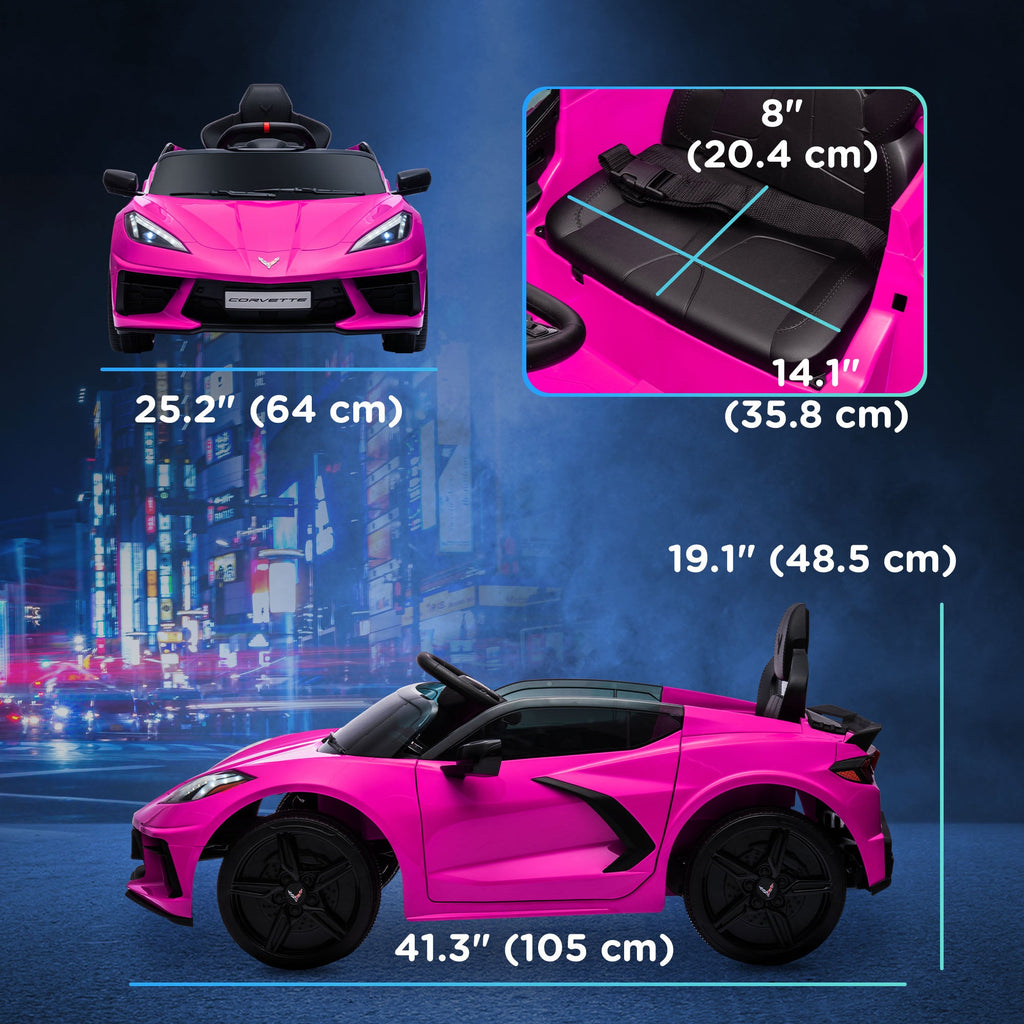 Licensed Chevrolet Corvette design with LED headlights, horn, and music for an authentic driving experience.