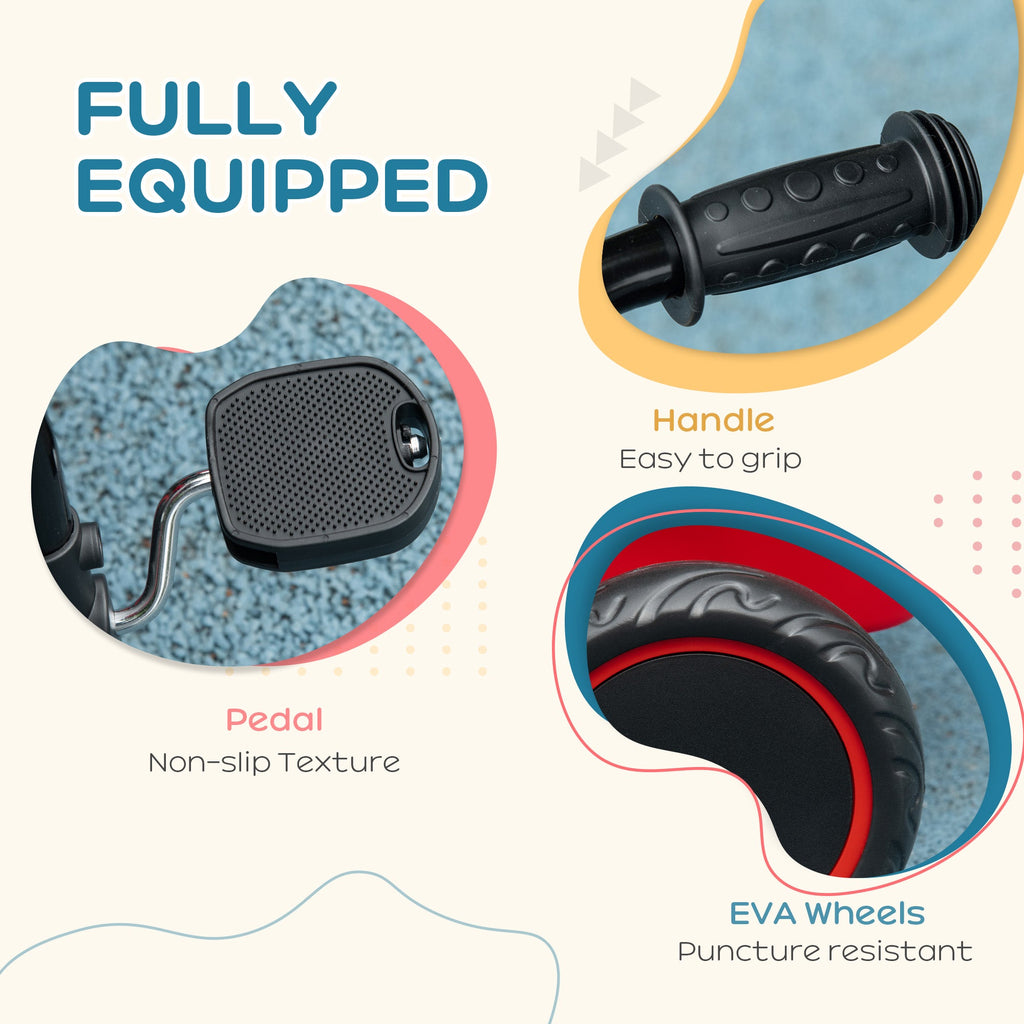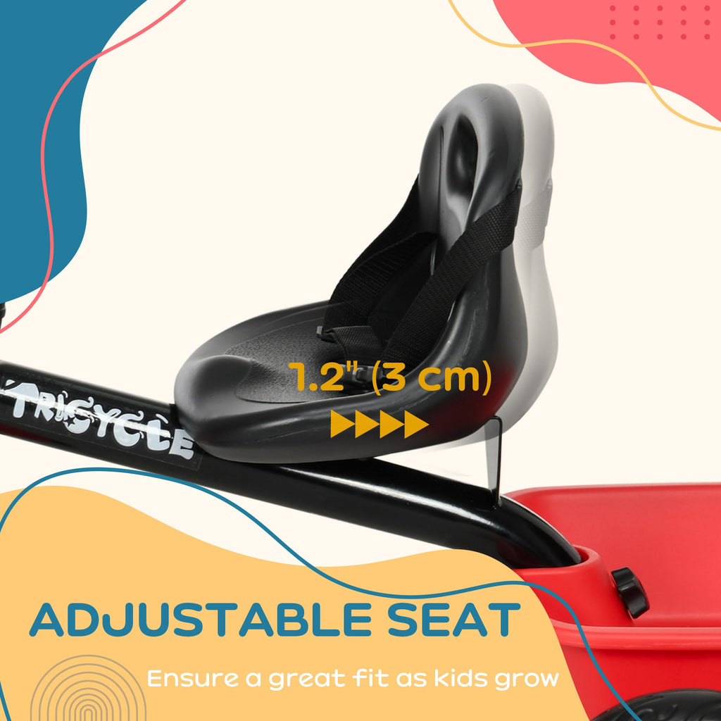 Designed with both comfort and safety in mind, this toddler tricycle is the perfect companion for your little one. With an adjustable seat and a 2-point safety belt, it grows with your child, ensuring a secure and enjoyable ride for kids aged 2-5. Built with a sturdy steel frame, non-slip pedals, and puncture-resistant wheels, this tricycle provides excellent stability and peace of mind during every adventure. It also features convenient built-in storage baskets for carrying toys or snacks, and a mudguard to protect from dirt and splashes. Plus, the easy-grip handle ensures a secure hold while riding. Assembly is quick and easy, giving you more time to create memorable moments with your child.