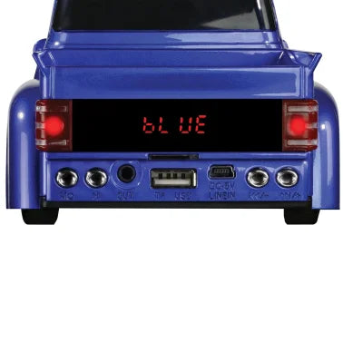Drive your music experience with the QFX® BT-1956 Retro Truck Bluetooth® Speaker (Blue). Combining the charm of a vintage truck design with modern Bluetooth® technology, this blue speaker delivers dynamic sound and eye-catching aesthetics. Whether you’re listening at home, outdoors, or at your next party, its portable and wireless capabilities make it the ideal choice for any occasion. The unique blue truck shape stands out, adding personality while offering top-notch audio performance, giving you a speaker that's as stylish as it is functional.
