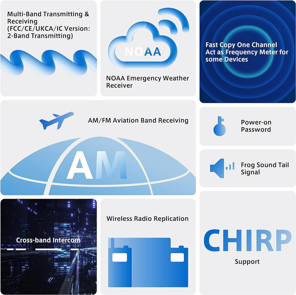 Fast Channel Copy & Wireless Cloning: Quickly replicate or copy frequencies between compatible radios.