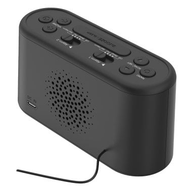 The RCA Digital Radio Alarm Clock with Large Numbers (Model RC551) offers a user-friendly and reliable way to wake up to your favorite AM/FM radio station. Featuring large, easy-to-read numbers on its digital display, this clock radio ensures that the time is visible even from a distance. The dual alarm functionality allows for two separate wake-up times, while the adjustable volume control ensures a pleasant wake-up experience. With a sleek, compact design, it’s perfect for any bedroom or office.