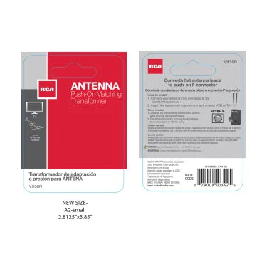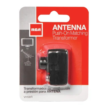 The RCA Indoor Push-On Matching Transformer provides a simple and effective solution for connecting antennas with a 300-ohm twin-lead connection to devices with a 75-ohm coaxial input. This push-on design allows for quick and hassle-free installation, ensuring minimal signal loss and reliable performance. Ideal for modernizing older antennas or integrating them into contemporary setups, this transformer is compact, durable, and an essential tool for improving your TV reception.