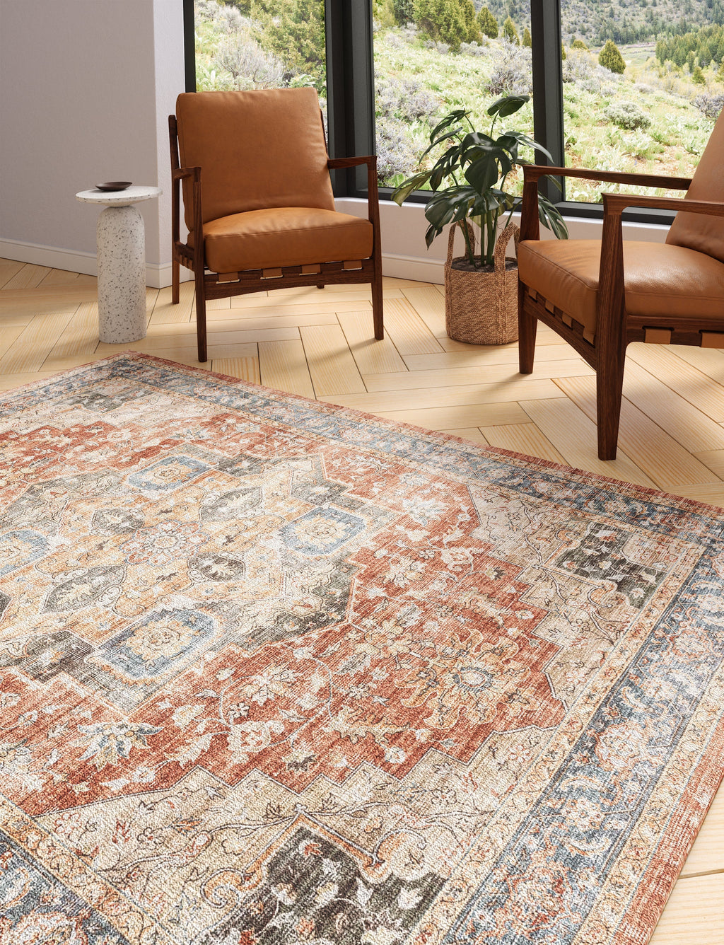 Transform your space with the Rivka Terracotta Ocean Rug, a stunning Persian-inspired masterpiece featuring a luxurious blend of terracotta and ocean blue hues. Designed to be the perfect centerpiece for any room, this rug combines timeless style with modern practicality. Available in two elegant options — a machine washable version for easy care or a premium linen rug for a refined, textural finish — the Rivka Rug effortlessly complements both contemporary and traditional interiors.