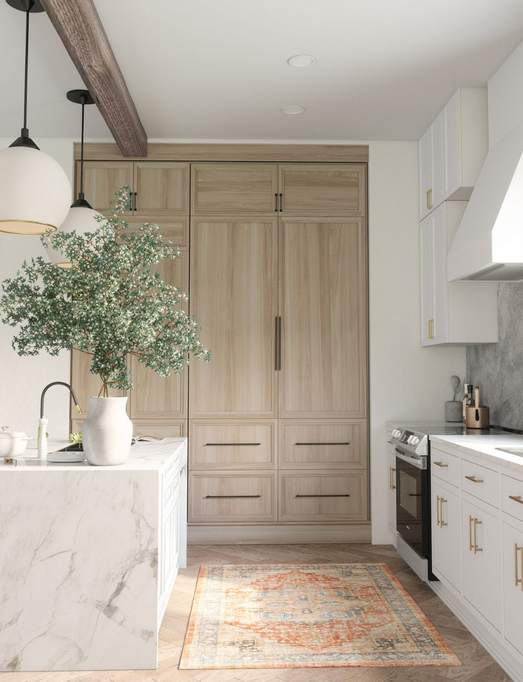 Persian-Inspired Design: Classic patterns and rich color depth in terracotta and ocean blue tones
