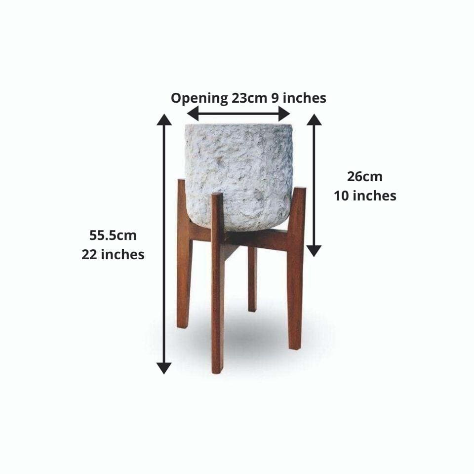 Bring timeless mid-century charm into your home with the Roma Mid-Century Rock Planter with Wooden Stand. Handcrafted from durable cement and paired with a walnut-stained wooden base, this stylish planter is both functional and decorative. Its smooth cement texture and warm wooden accents create a striking contrast that enhances any indoor or outdoor setting. Whether showcasing a lush faux plant or a real favorite, the Roma planter delivers enduring elegance and sophistication.