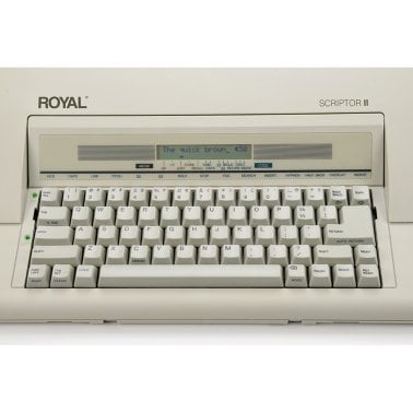 The Royal® Scriptor II Portable Electronic Typewriter combines the nostalgic charm of a classic typewriter with modern convenience and functionality. This portable typewriter features a crisp, 20-character LCD display for easy text editing and a built-in memory for saving frequently used documents. It offers a full-size keyboard and adjustable typing speeds, making it an excellent tool for writers, students, and professionals. Compact and lightweight, the Scriptor II is easy to transport, perfect for on-the-go typing tasks. Whether for creative projects, office use, or personal correspondence, this typewriter delivers reliable performance and vintage style.
