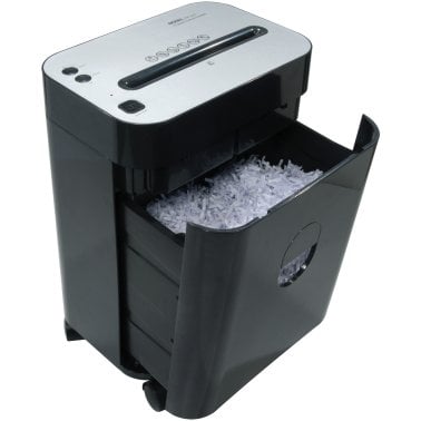 The Royal® PX1201 12-Sheet Crosscut Shredder is designed for efficient and secure document destruction, shredding up to 12 sheets of paper per pass. Its robust crosscut blades offer enhanced security by turning sensitive information into small confetti-like pieces. This shredder also shreds staples and credit cards, ensuring complete disposal of confidential materials. Featuring a 5-gallon pull-out wastebasket with a clear window, it allows easy monitoring and disposal. Compact, stylish, and easy to use, the PX1201 is perfect for home or office use, providing peace of mind and convenience.
