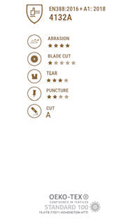 EN 388:2016 + A1:2018: 4132A (mechanical protection)
