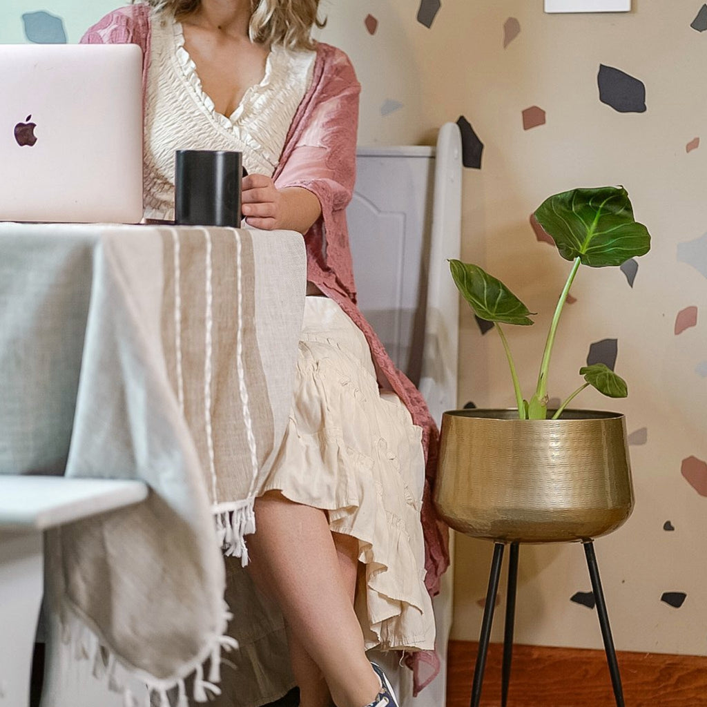 Elevate your home décor with the Sara Brass Planter with Black Legs by ArtiPlanto, a stunning fusion of mid-century design and timeless craftsmanship. Handcrafted by skilled artisans in India, each brass planter features a unique antique finish that adds elegance and warmth to any setting.