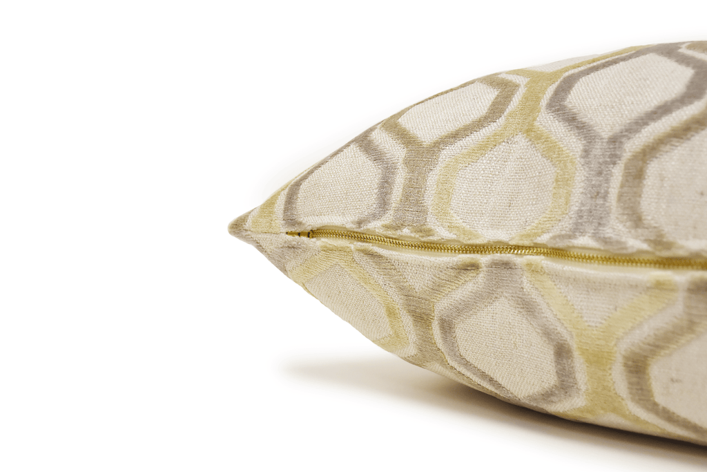 Add elegance and comfort to your home with the Shell Cushion Cover. Featuring a luxurious silver and gold chainlink pattern on a soft velvety fabric, this cover instantly elevates any space. Perfect for pairing with your favorite cushion to enhance a sofa, armchair, or bed. Hand-crafted in Canada from a premium linen blend, it offers timeless sophistication and superior quality. Available only while supplies last.