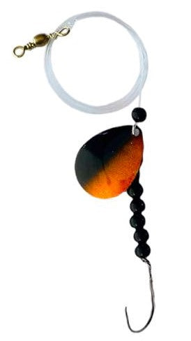 The Colorado Spinner with a Midnight Gold blade combines dark-toned stealth with golden flash, making it ideal for low-light, deep-water, or stained water conditions. The hammered blade design enhances light reflection, while the Colorado shape delivers a strong, slow-rolling vibration to draw in fish from a distance. Perfect for targeting bass, trout, walleye, and crappie during dawn, dusk, or cloudy days.
